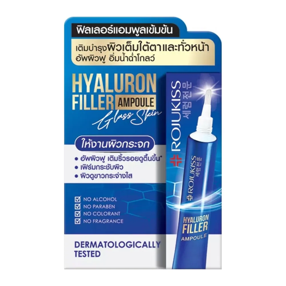 โรจูคิส ไฮยา ฟิลเลอร์ แอมพูล ไฮยารูลอน แอมพูลเข้มข้น ทาได้ทั้งหน้าและรอบดวงตา เติมไฮยารูลอนให้ผิวรู้สึกตึงกระชับทันทีที่ใช้ เติมเต็มไฮยารูลอนให้ผิวมากถึง 8 โมเลกุล ด้วยนวัตกรรม HYA-FOCUS Technology ให้ผิวดูอวบอิ่ม ดูเรียบเนียน พร้อม 5X Action กู้ผิวรอบดวงตา และใบหน้าที่ไม่สดใส แลดูไม่กระชับ และริ้วรอยเริ่มต้นได้ครบทุกด้าน<br />