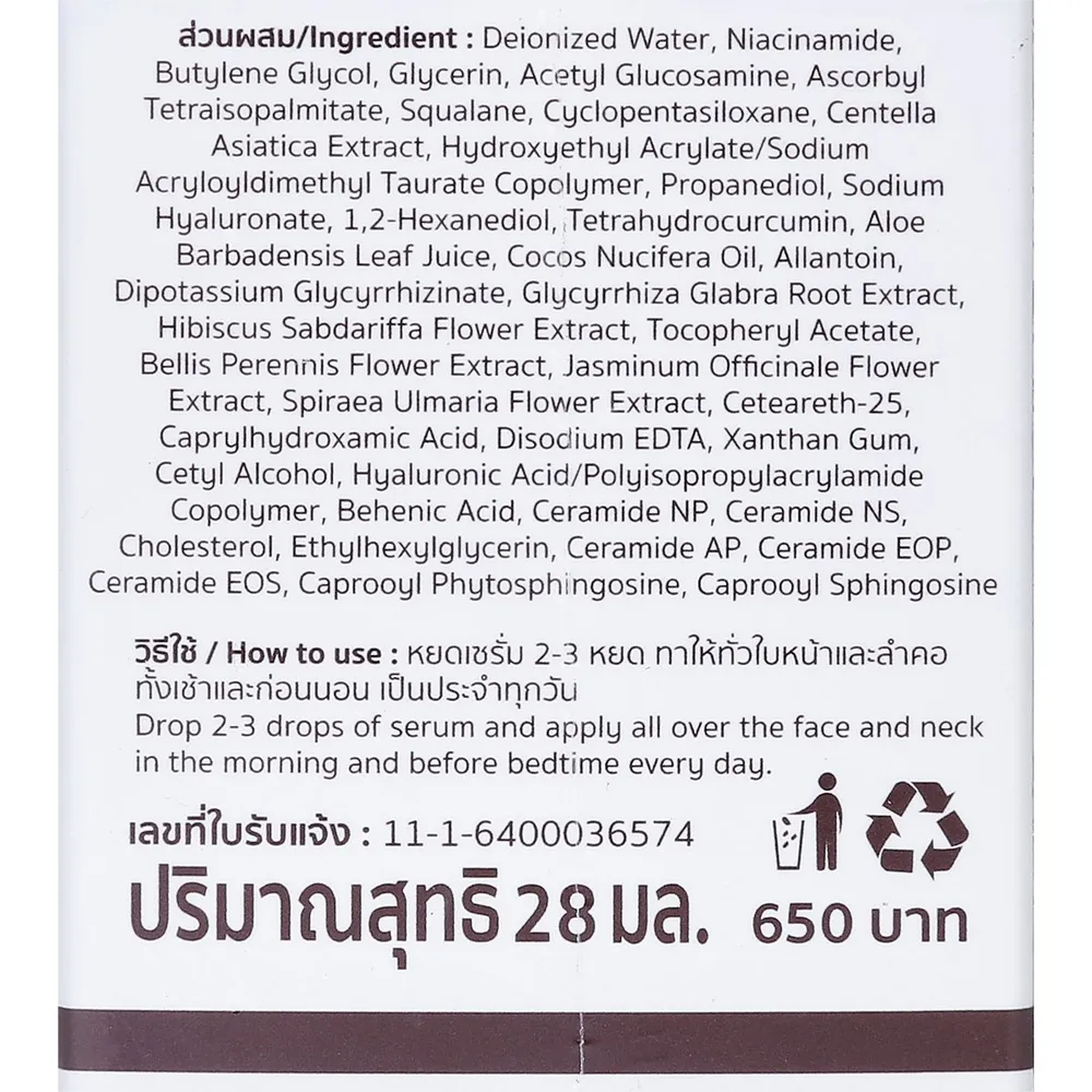 <strong>วิธีใช้:</strong> หยดเซรั่ม 2-3 หยด ทาให้ทั่วใบหน้าและลำคอทั้งเช้าและก่อนนอนเป็นประจำทุกวัน<br />