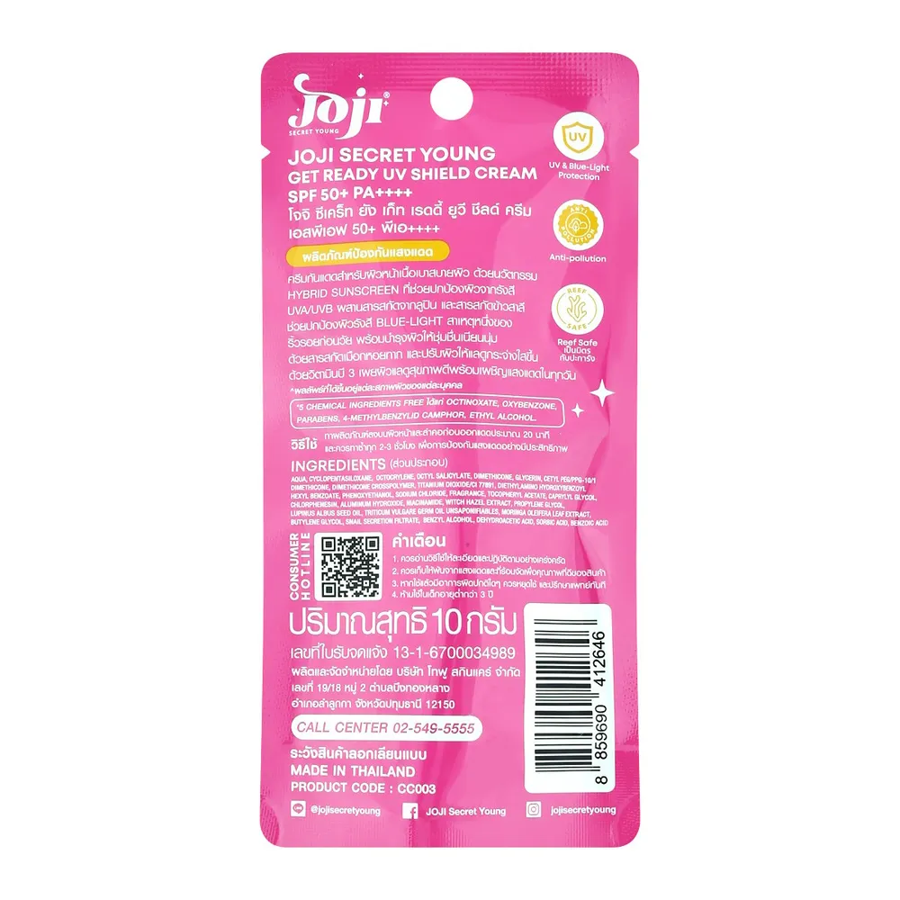 โจจิ ซีเคร็ท ยัง เก็ท เรดดี้ ยูวี ชีลด์ ครีม SPF 50+ PA++++ 10 ก.