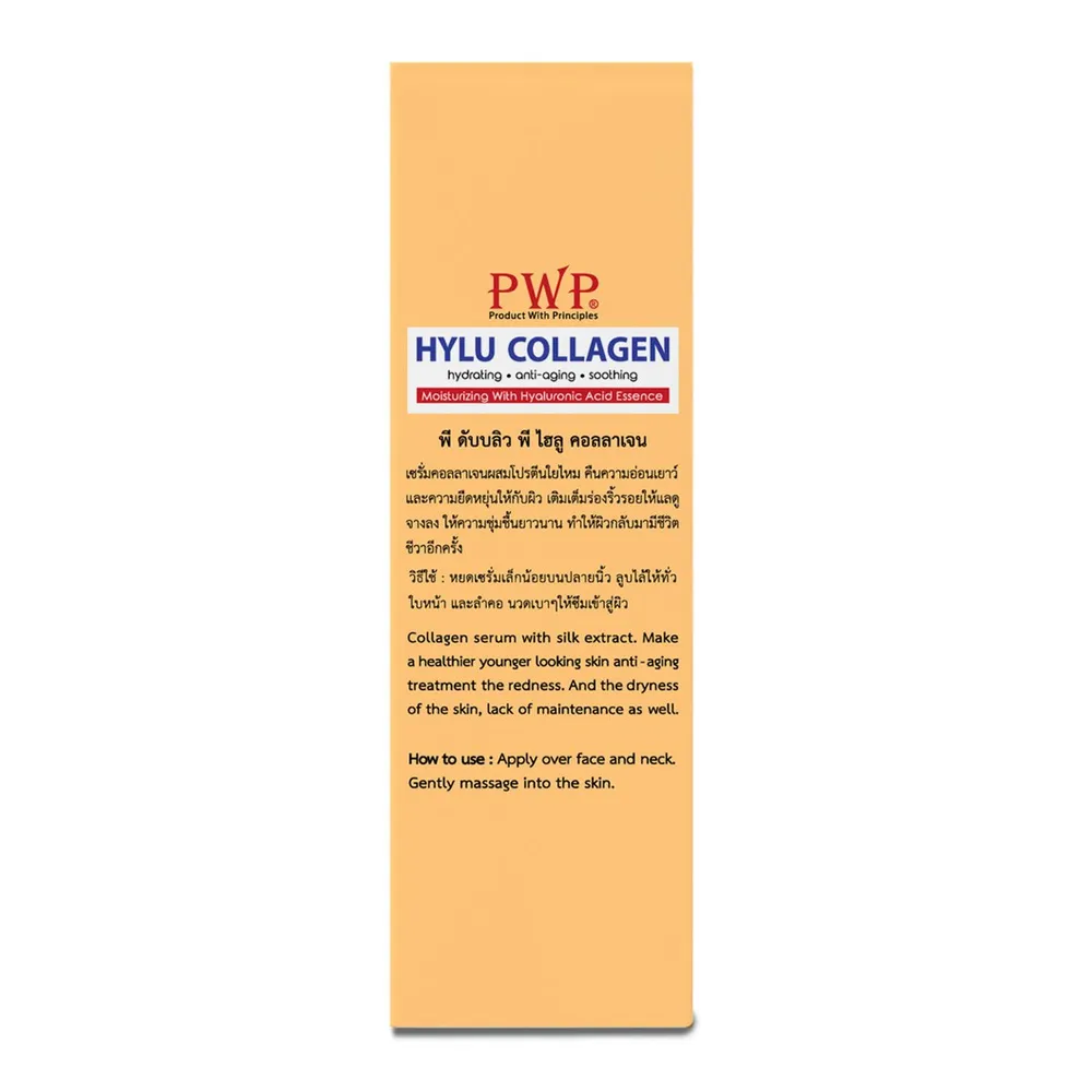 พี ดับบลิว พี ไฮลู คอลลาเจน เซรั่มสูตรเฉพาะ ทรงคุณค่าด้วยสารสกัดโปรตีนรังไหม ผสาน Hyaluronic acid และ Collagen โดยปราศจากน้ำหอมและแอลกอฮอล์ ช่วยบำรุงผิว 5 ประการ<br />