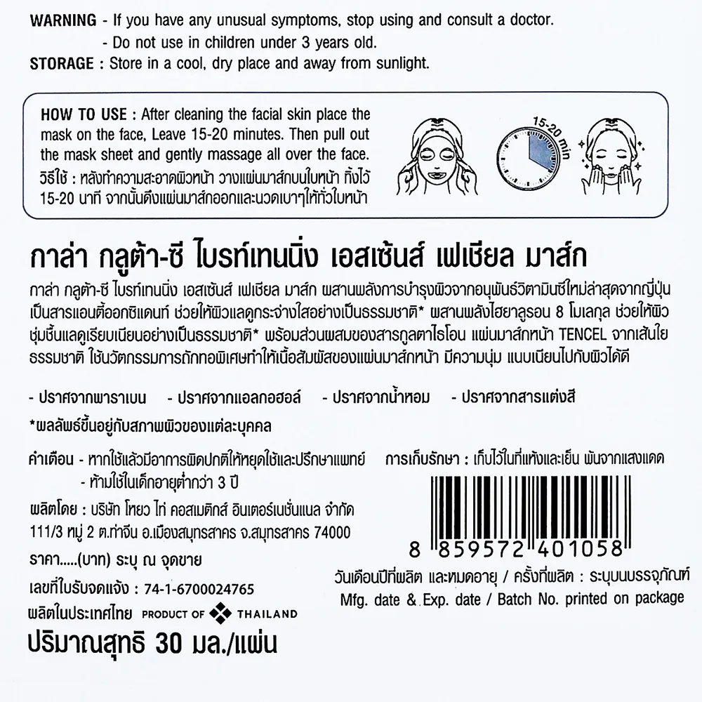 <p>กาล่า กลูต้า-ซี ไบรท์เทนนิ่ง เอสเซนส์ เฟเชียล มาส์ก<br />