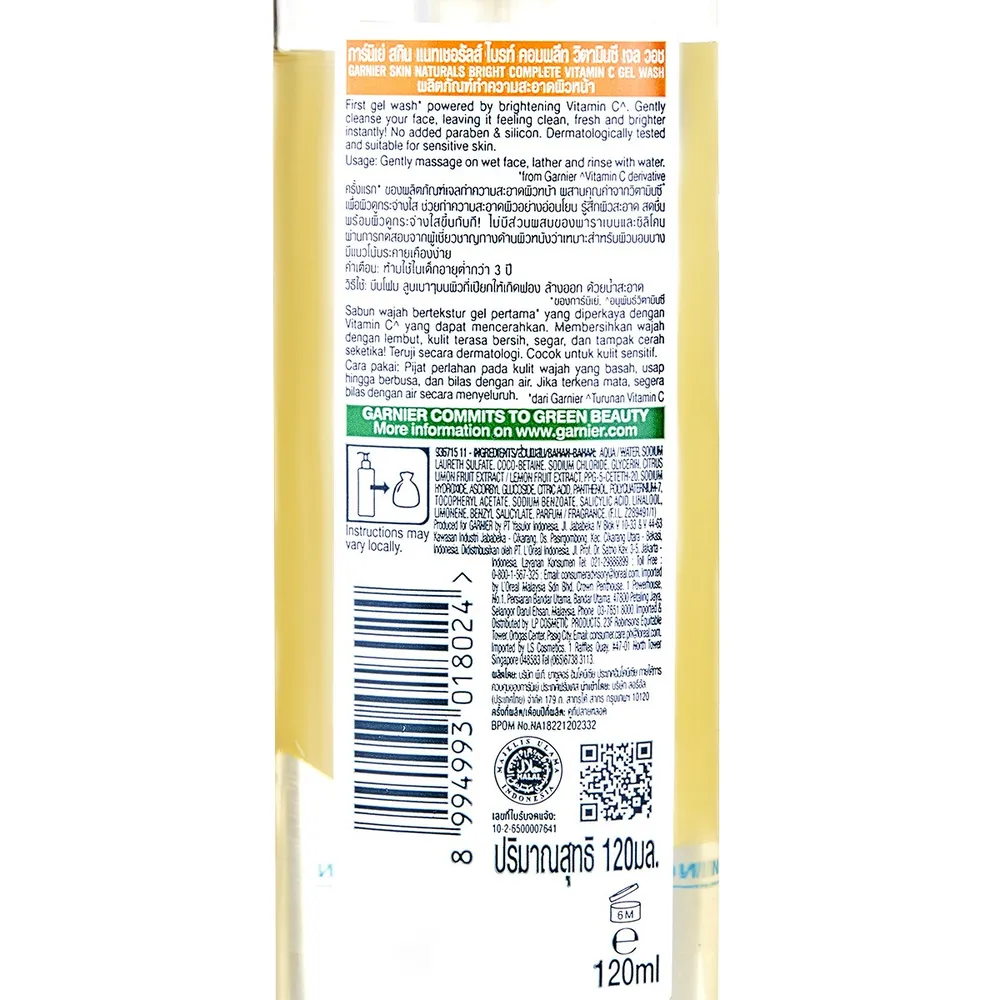 การ์นิเย่ สกิน แนทเชอรัลส์ ไบรท์ คอมพลีท วิตามินซี เจล วอช 120 มล.