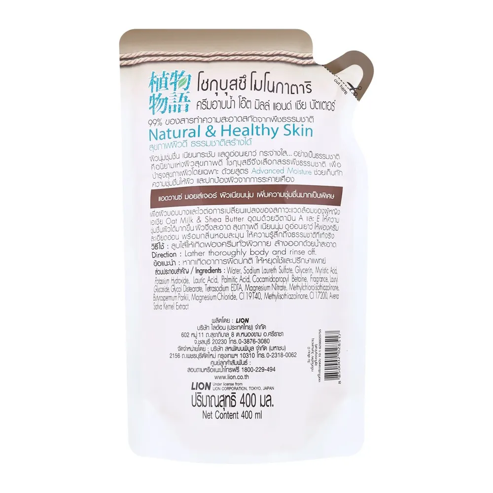 โชกุบุสซึ โมโนกาตาริ ครีมอาบน้ำ สูตรเพิ่มความชุ่มชื่นสำหรับผิวแห้ง 400 มล. ถุงเติม