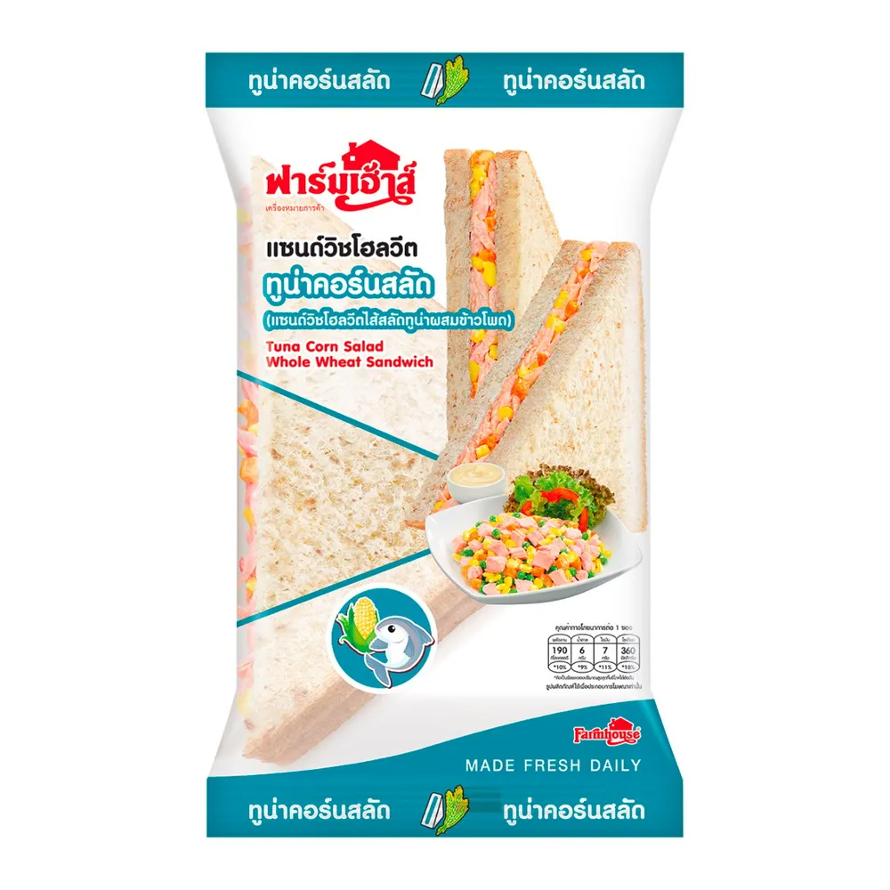 <p>ฟาร์มเฮ้าส์ แซนด์วิชโฮลวีตไส้สลัดทูน่าผสมข้าวโพด<br />