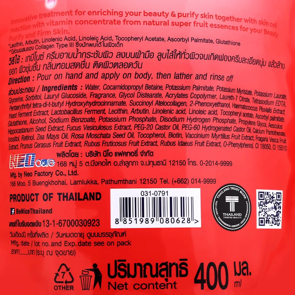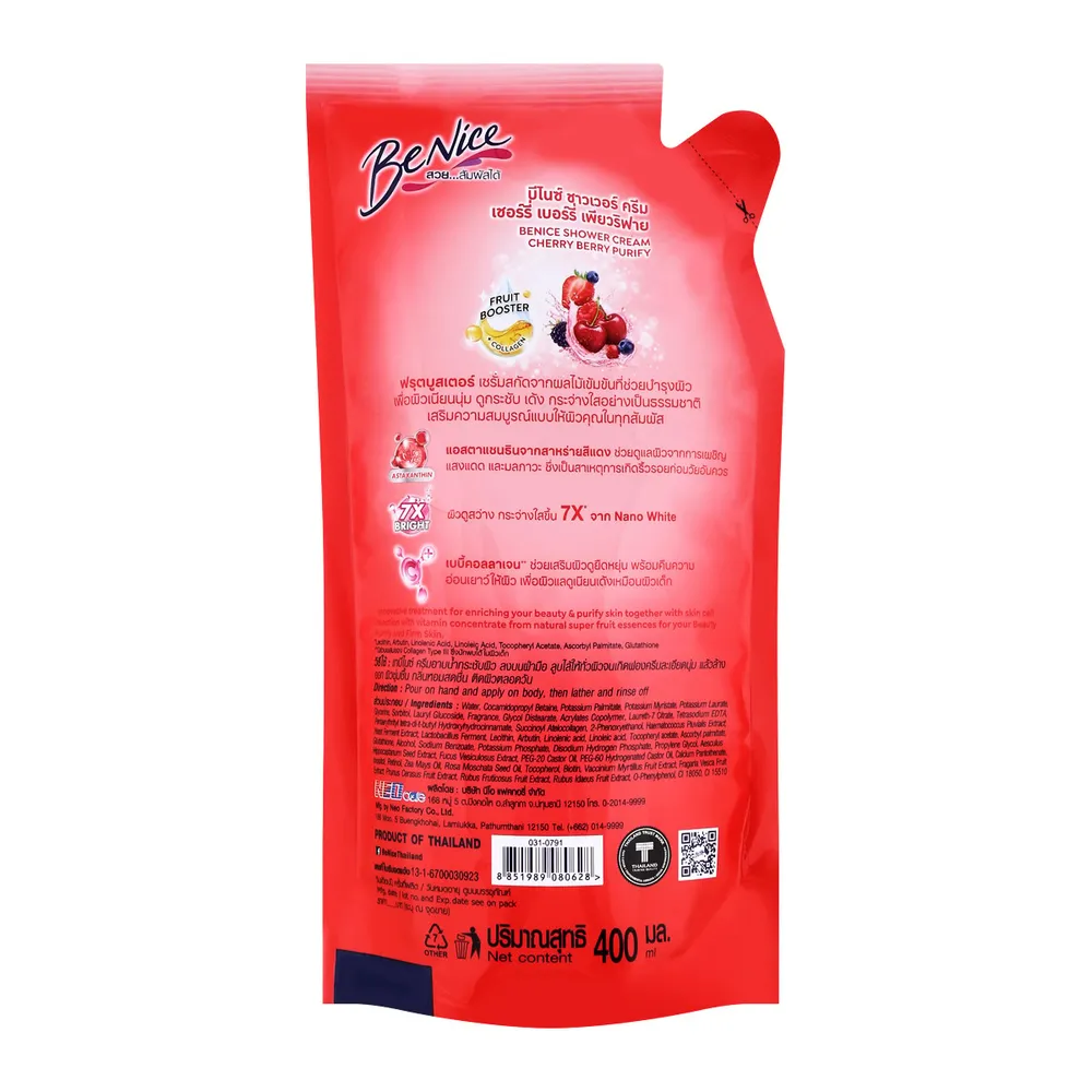บีไนซ์ ครีมอาบน้ำ สูตรเชอร์รี่เบอร์รี่ พิวริฟาย ชนิดเติม 400 มล.