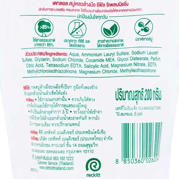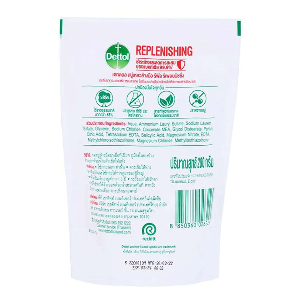 เดทตอล สบู่เหลวล้างมือ แอนตี้แบคทีเรีย สูตรสกินแคร์ ถุงเติม 200 มล.