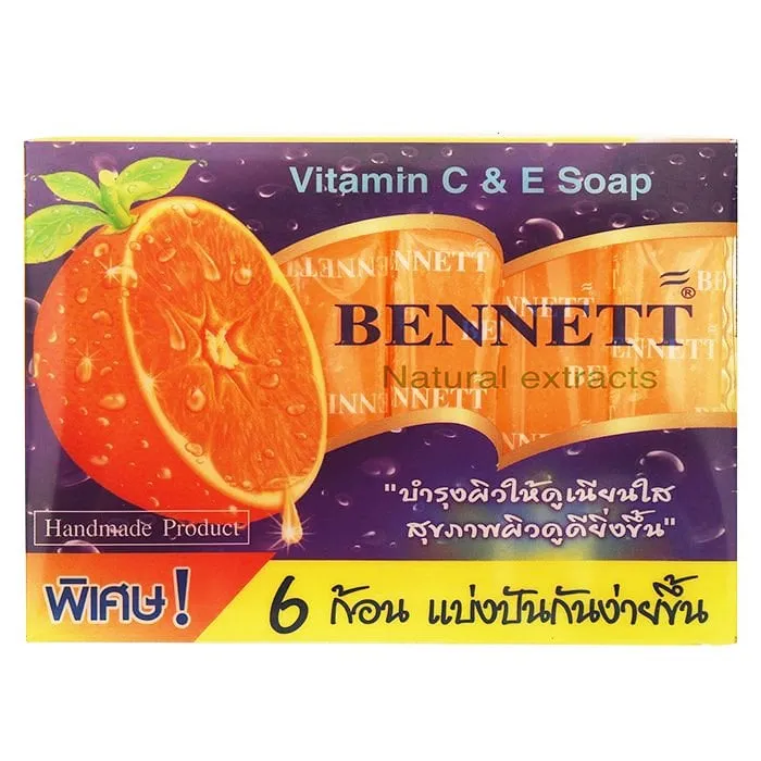 เบนเนท สบู่วิตามินซี แอนด์ อี สบู่สมุนไพรจากธรรมชาติที่มีส่วนผสมของวิตามินและสารสกัดจากธรรมชาติ ทั้งวิตามินอี วิตามินซี สารสกัดจากเปลือกส้ม และสารสกัดจากสมุนไพร ซึ่งช่วยทำให้ผิวดูผุดผ่องเนียนสวยขึ้น ทั้งปกป้องผิวจากสิว ฝ้า ผด รวมถึงช่วยระงับกลิ่นตัวอย่างได้ผล&nbsp;<br />