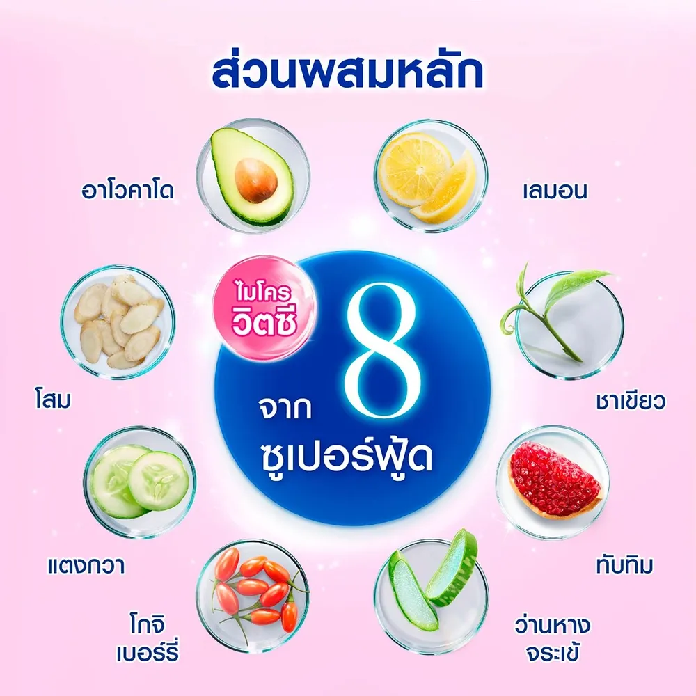 - ผสานวิตามินซีเข้มข้น และคอลลาเจน บูสเตอร์+ ฟื้นบำรุงผิวคล้ำเสียล้ำลึก ให้วงแขนดูกระจ่างใสขึ้น<br />