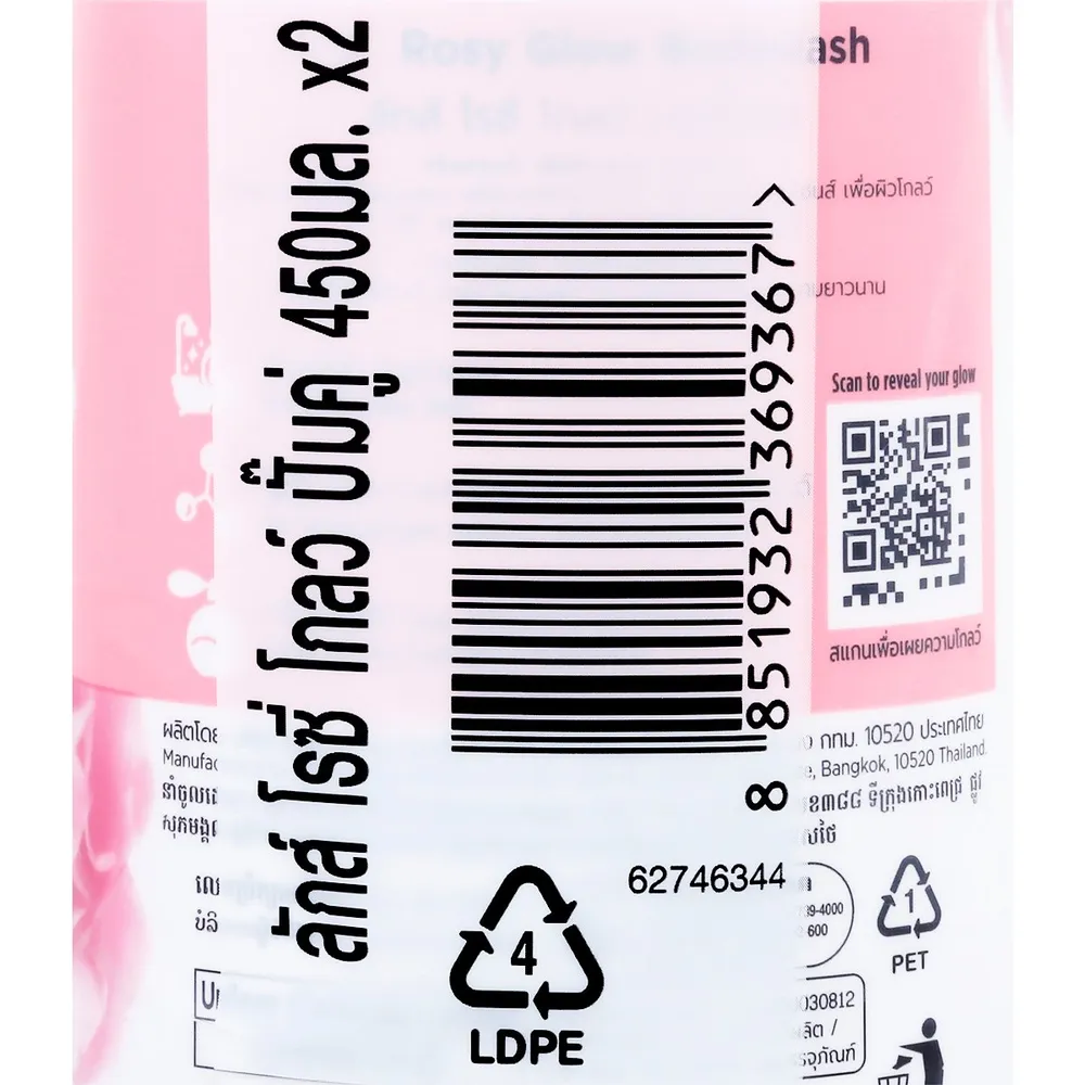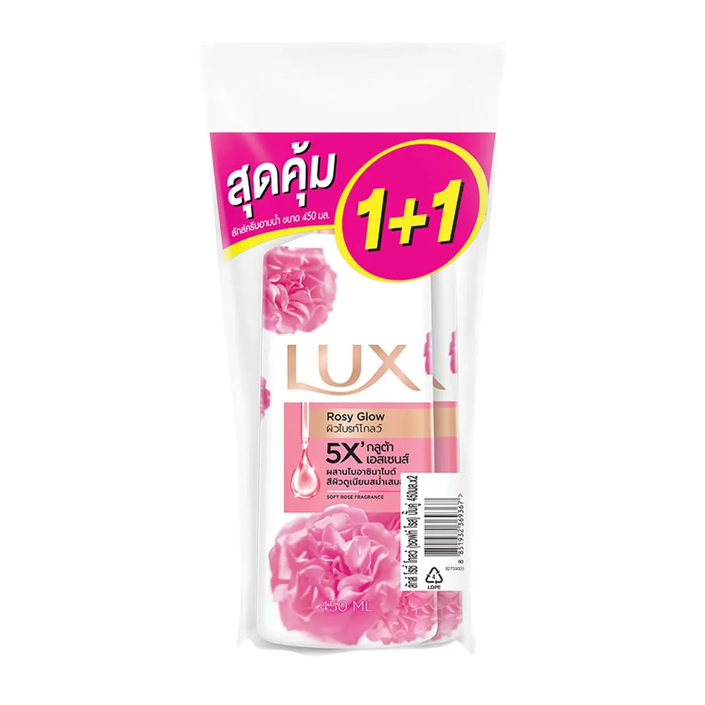 ลักส์ ครีมอาบน้ำ โรสซี่ โกลว์ ขวดปั๊ม 450 มล. แพ็ค 1+1