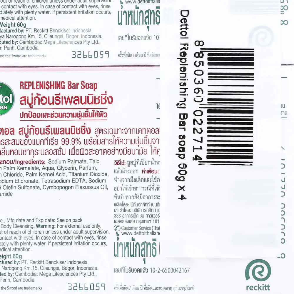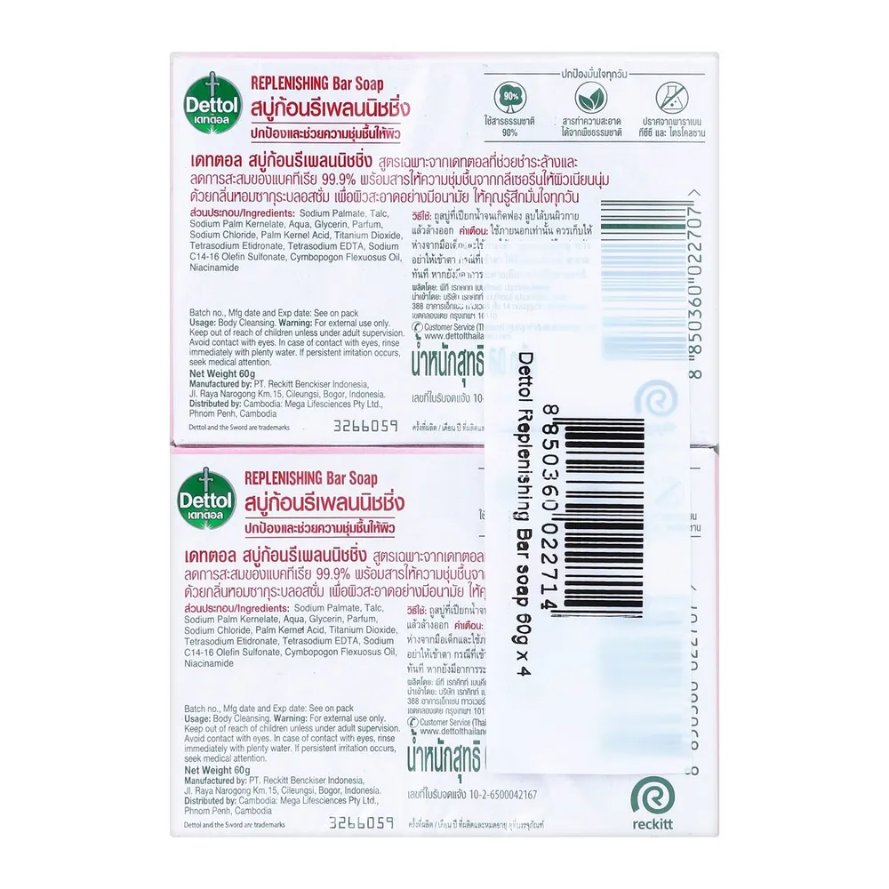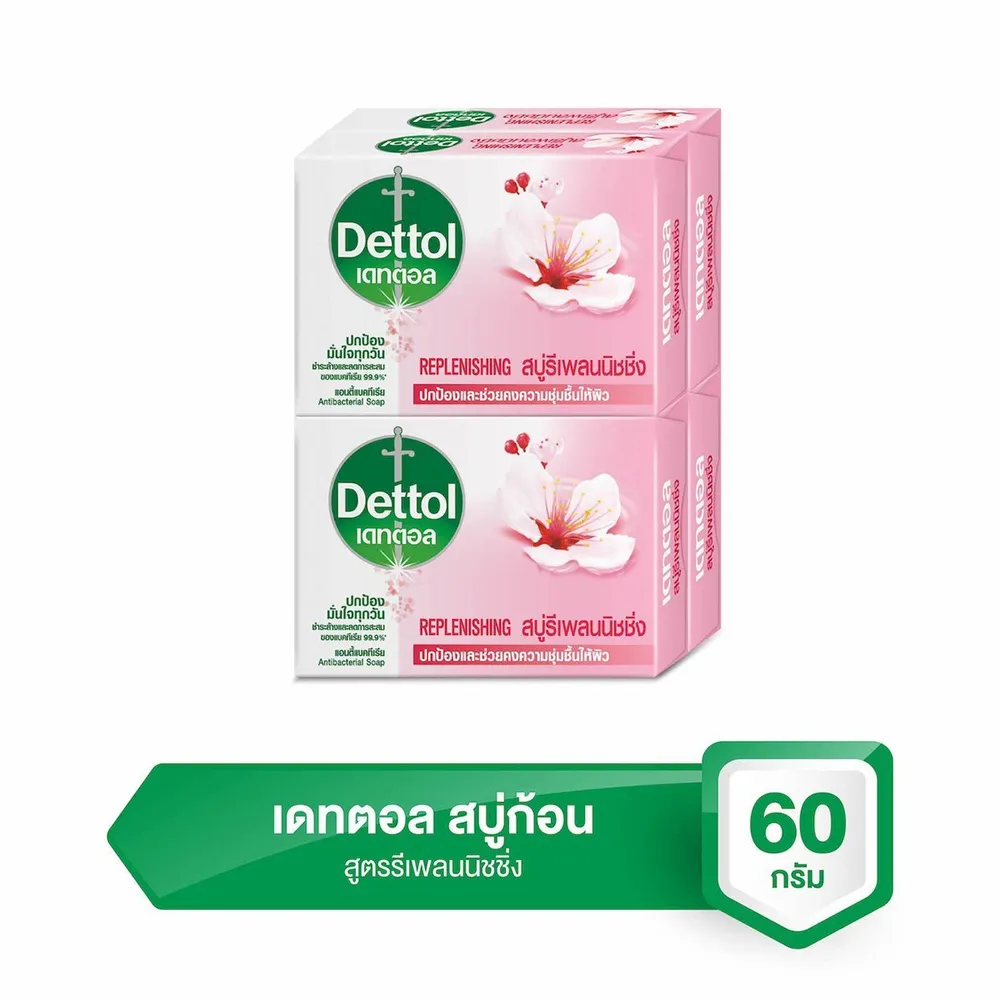 เดทตอล สบู่ แอนตี้แบคทีเรีย สูตรรีเพลนนิชชิ่ง 60 ก. แพ็ค 4