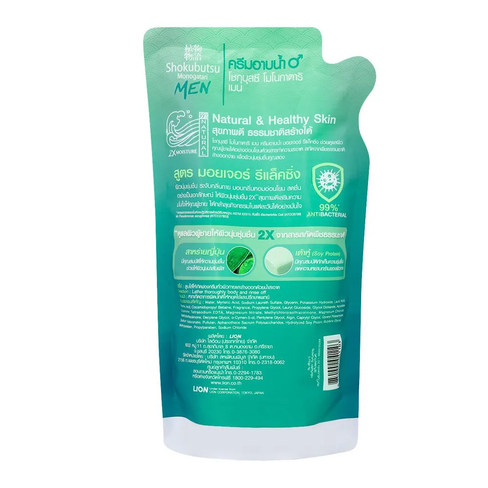 สบู่เหลวอาบน้ำชาย โชกุบุสซึ โมโนกาตาริ สูตรมอยเจอร์ รีแล็คซิ่ง อ่อนโยน ไม่แพ้ ที่ช่วยทำให้ผิวชุ่มชื่นแลดูสุขภาพดี ช่วยทำความสะอาดผิวและรู้สึกเย็นสดชื่น<br />