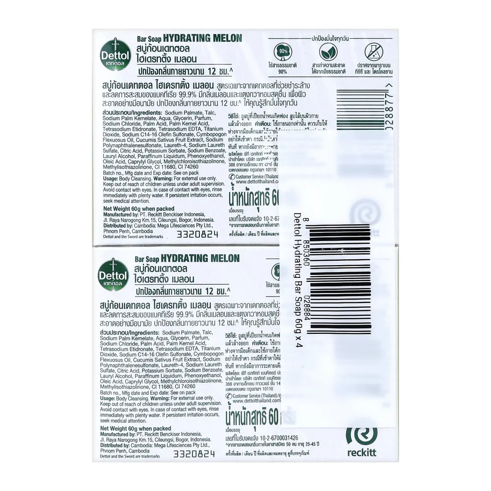 เดทตอล สบู่ แอนตี้แบคทีเรีย สูตรไฮเดรทติ้ง 60 ก. แพ็ค 4