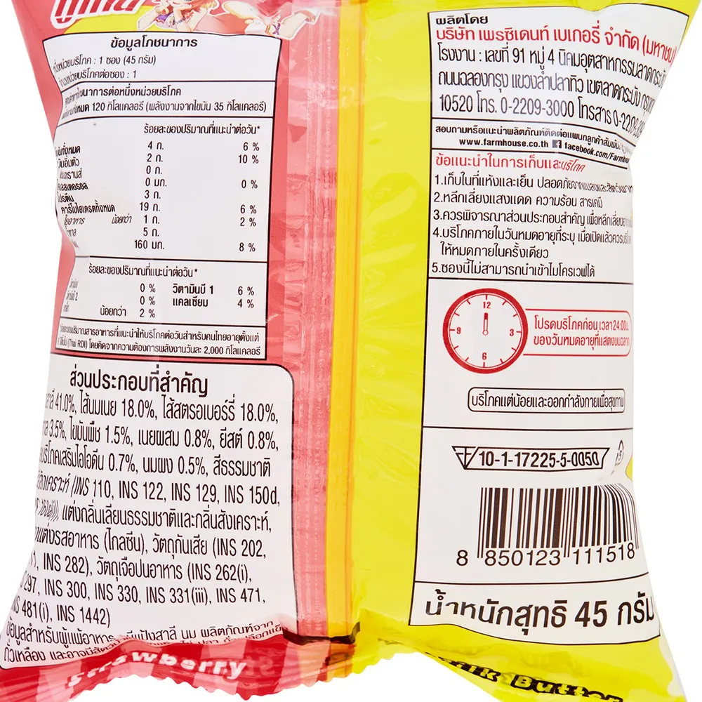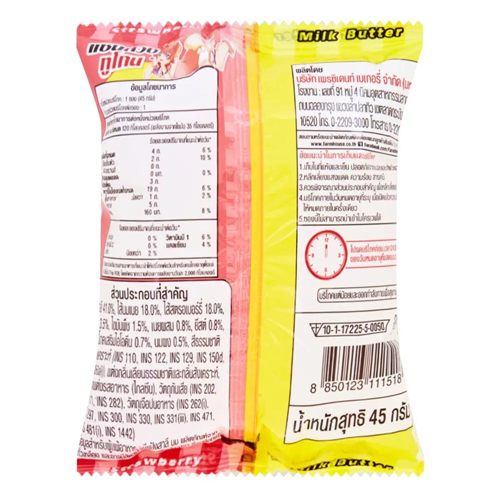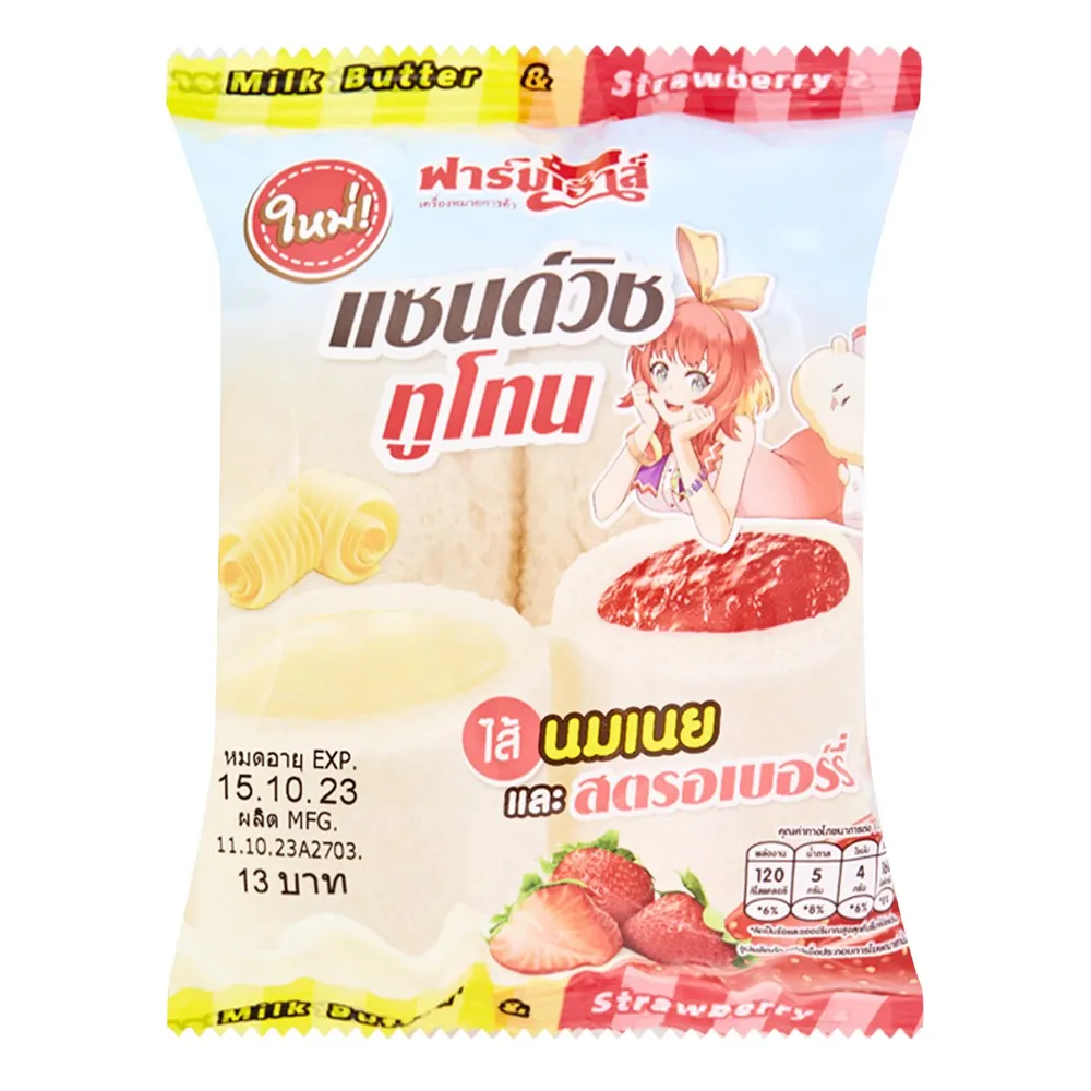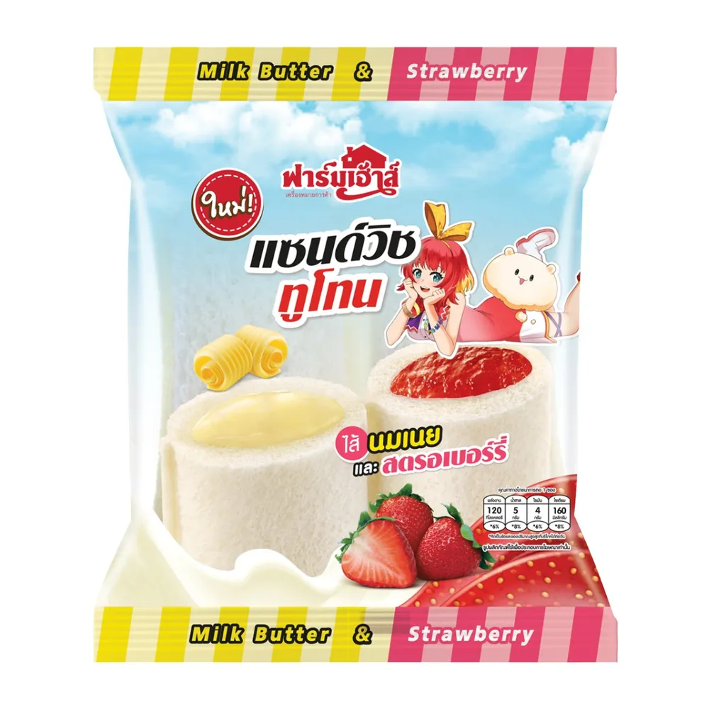 <p>ฟาร์มเฮ้าส์ แซนวิชทูโทนไส้นมเนยและสตรอเบอร์รี่ 45 ก.<br />
