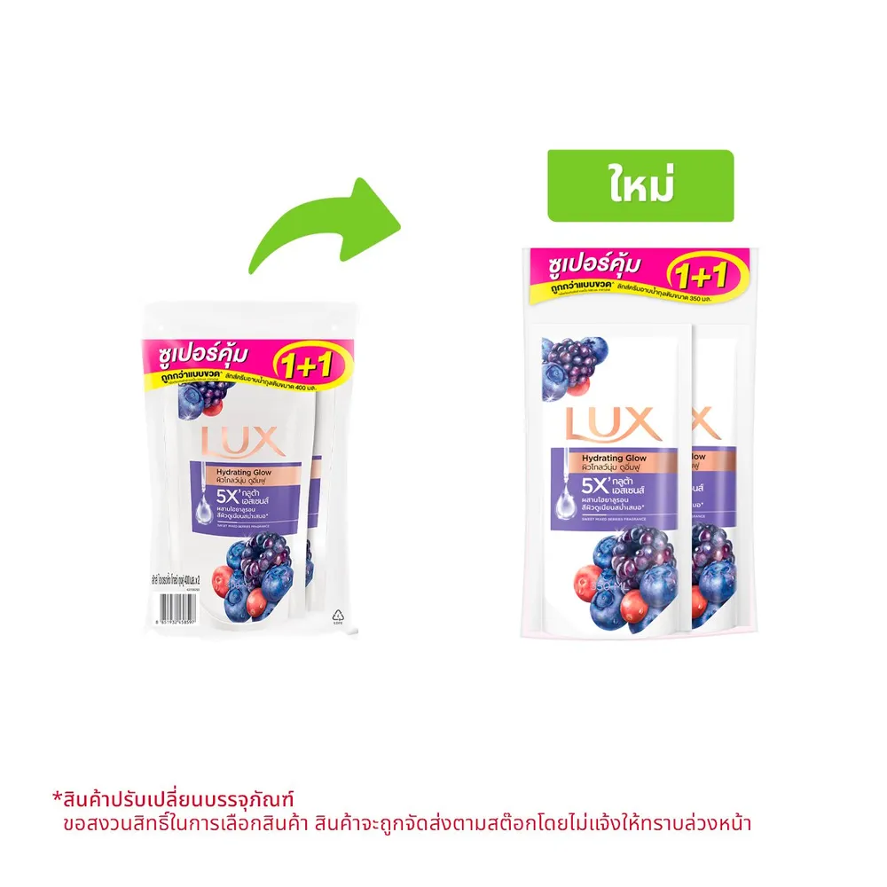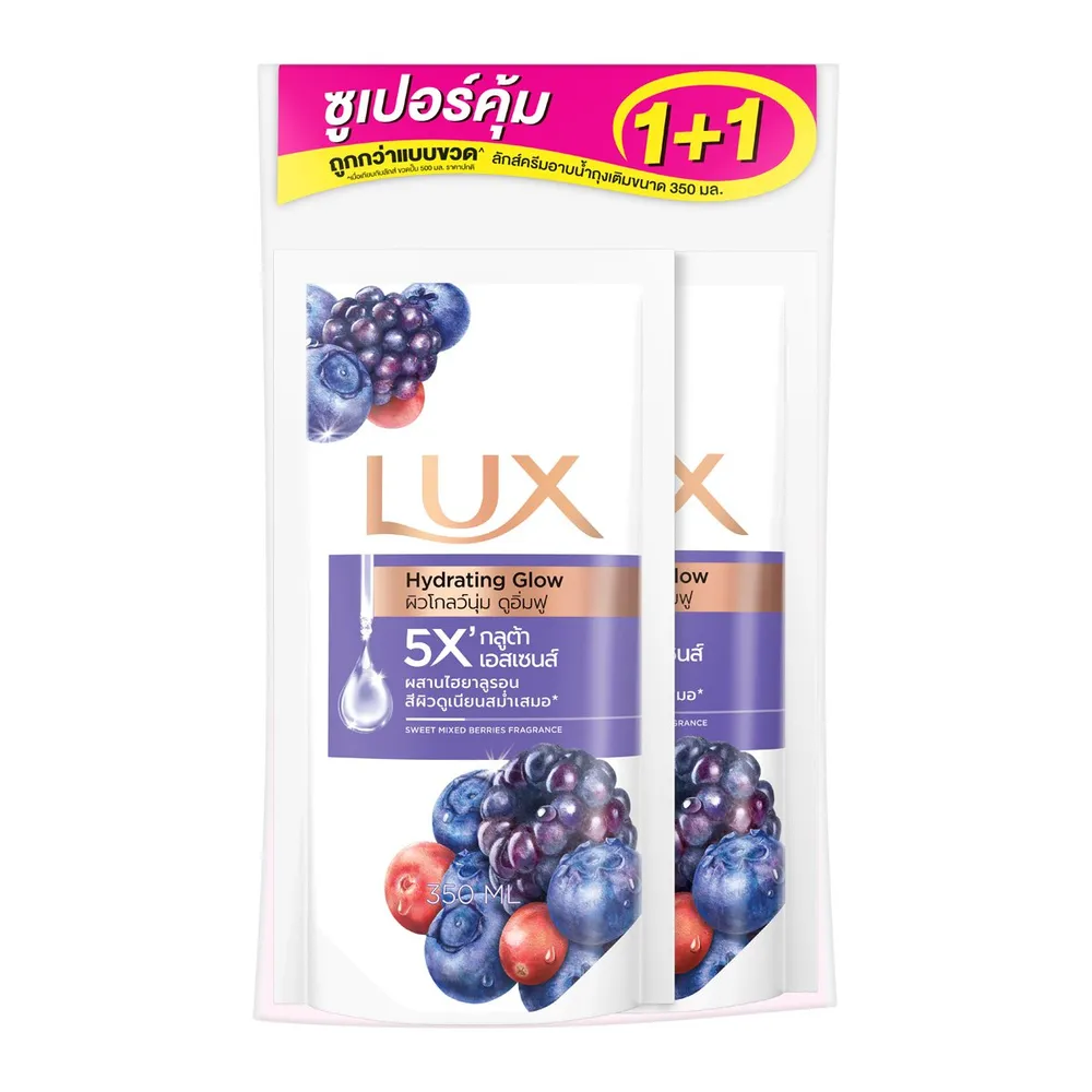ลักส์ ครีมอาบน้ำ ไฮเดรตติ้ง โกลว์ มิกซ์เบอร์รี่ ถุงเติม 350 มล. แพ็ค 1+1
