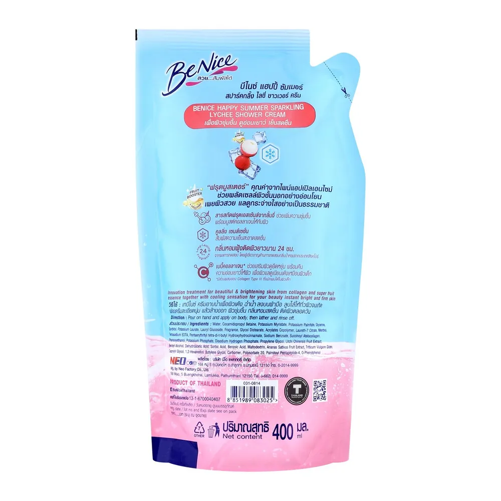 บีไนซ์ ครีมอาบน้ำ แฮปปี้ ลิ้นจี่ ถุงเติม 400 มล.