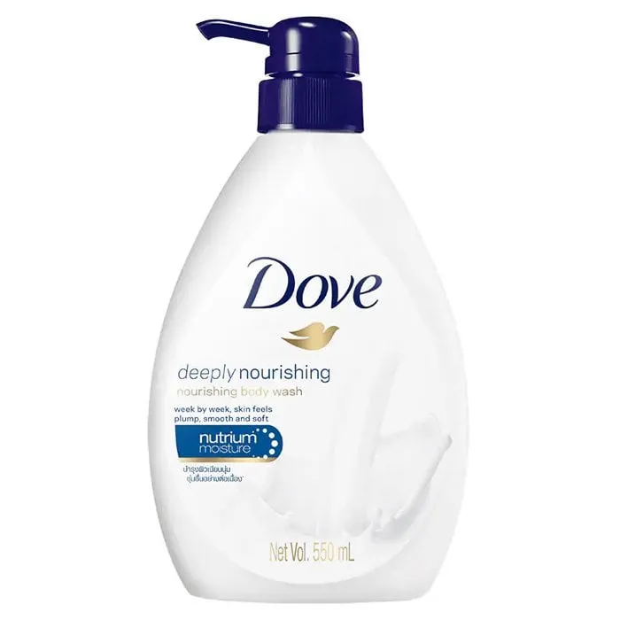 โดฟ ครีมอาบน้ำ ดีพลี่ เนอร์ริชชิ่ง สีน้ำเงิน 550 มล. อาบมอยส์เจอร์ไรเซอร์เพื่อผิวชุ่มชื่นนุ่มเด้ง แตกต่างด้วย เทคโนโลยี Nutrium Moisture นูเทรียมมอยซ์เจอร์ ผสมผสานอย่างลงตัวด้วยมอยซ์เจอร์ไรเซอร์และสารบำรุงที่มีอยู่ในผิวตามธรรมชาติ เพื่อการบำรุงล้ำลึกสู่ชั้นผิว อย่างมีประสิทธิภาพ - มีมอยซ์เจอร์ไรเซอร์และสารบำรุงผิวตามธรรมชาติ - สูตรอ่อนโยนต่อผิว - ล้างออกง่าย<br />