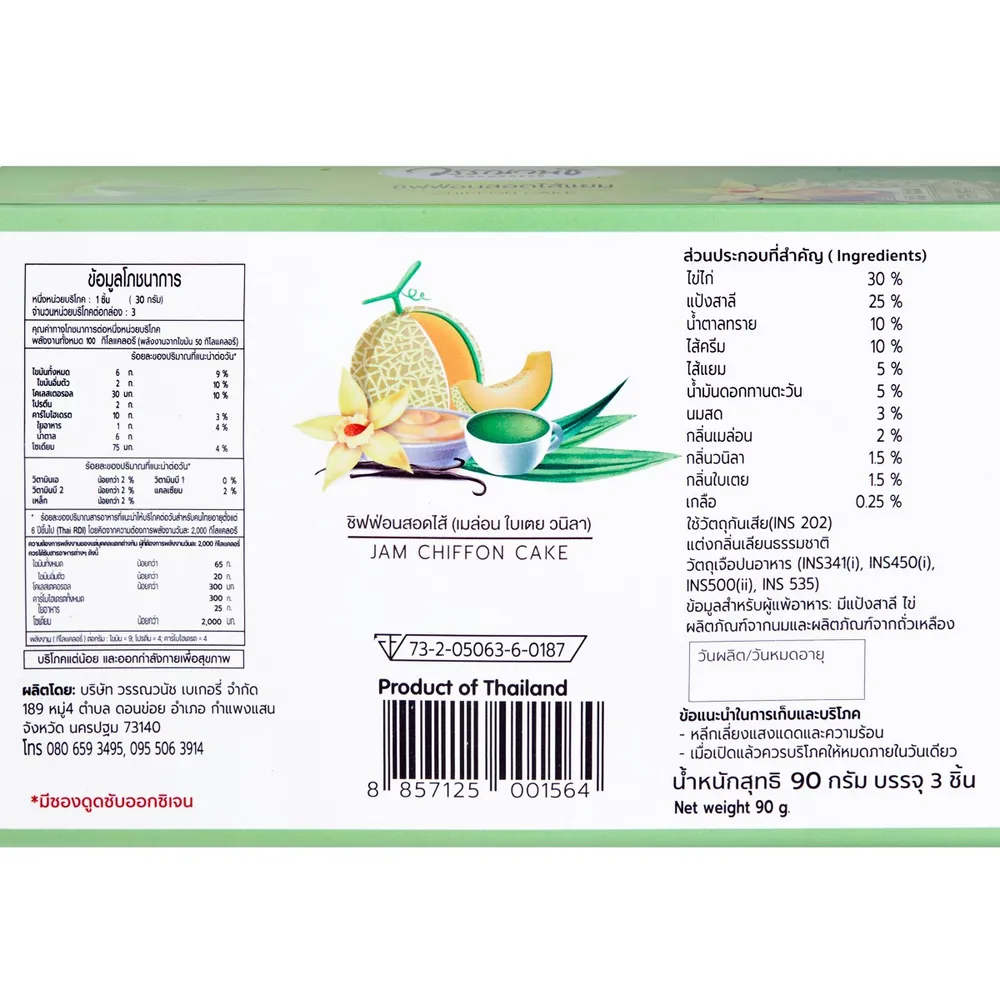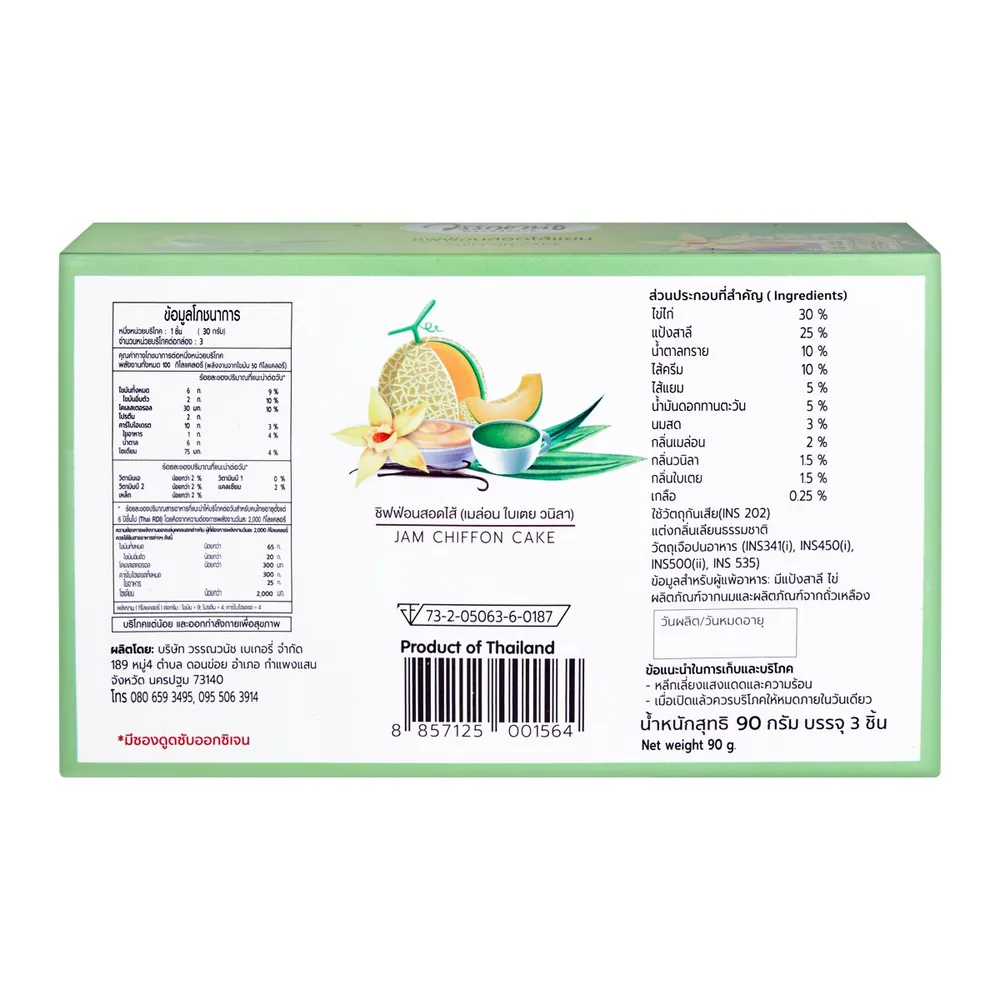 <p>วรรณวนัช ชิฟฟ่อนสอดไส้แยมเมล่อน ใบเตย วนิลา<br />