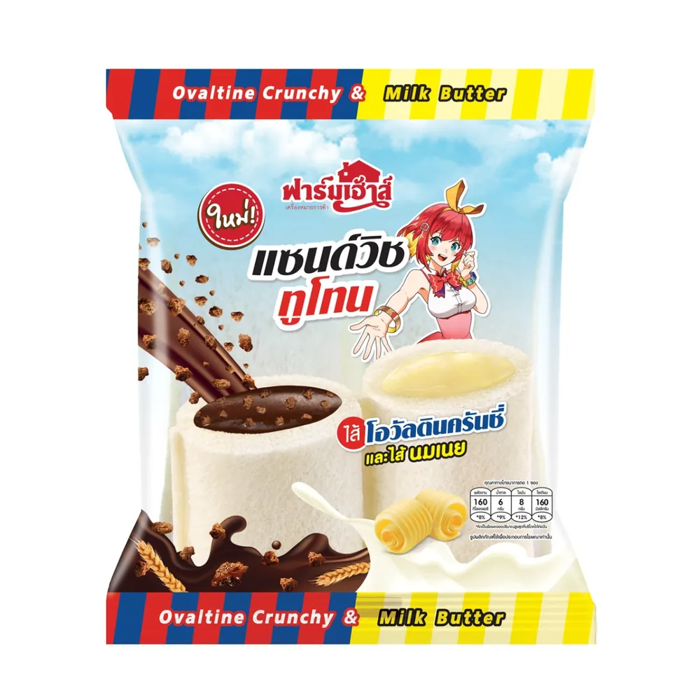 - ฟาร์มเฮ้าส์ แซนด์วิชทูโทนไส้โอวัลตินครันชี่และนมเนย<br />