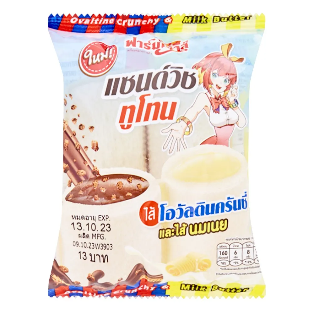 <p>ฟาร์มเฮ้าส์ แซนด์วิชทูโทนไส้โอวัลตินครันชี่และนมเนย 45 ก.<br />