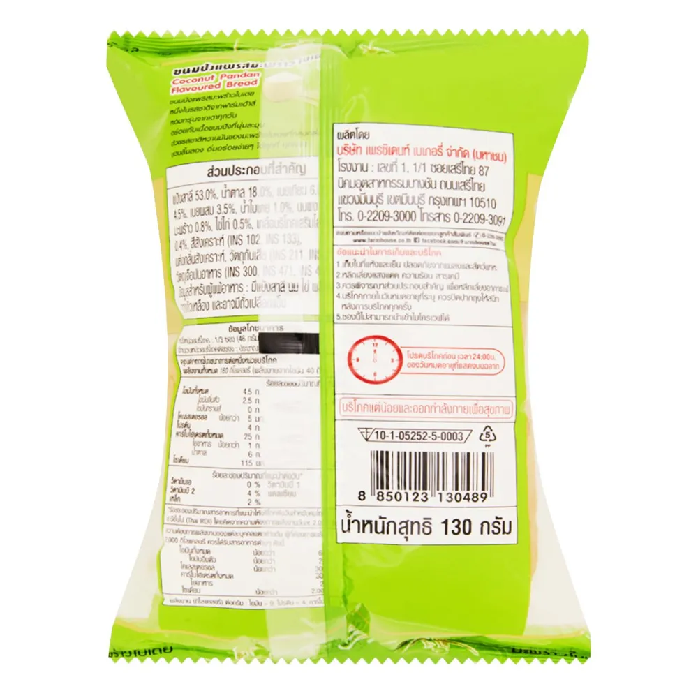 <p>ฟาร์มเฮ้าส์ ขนมปังแพมะพร้าวใบเตย 130 ก.<br />