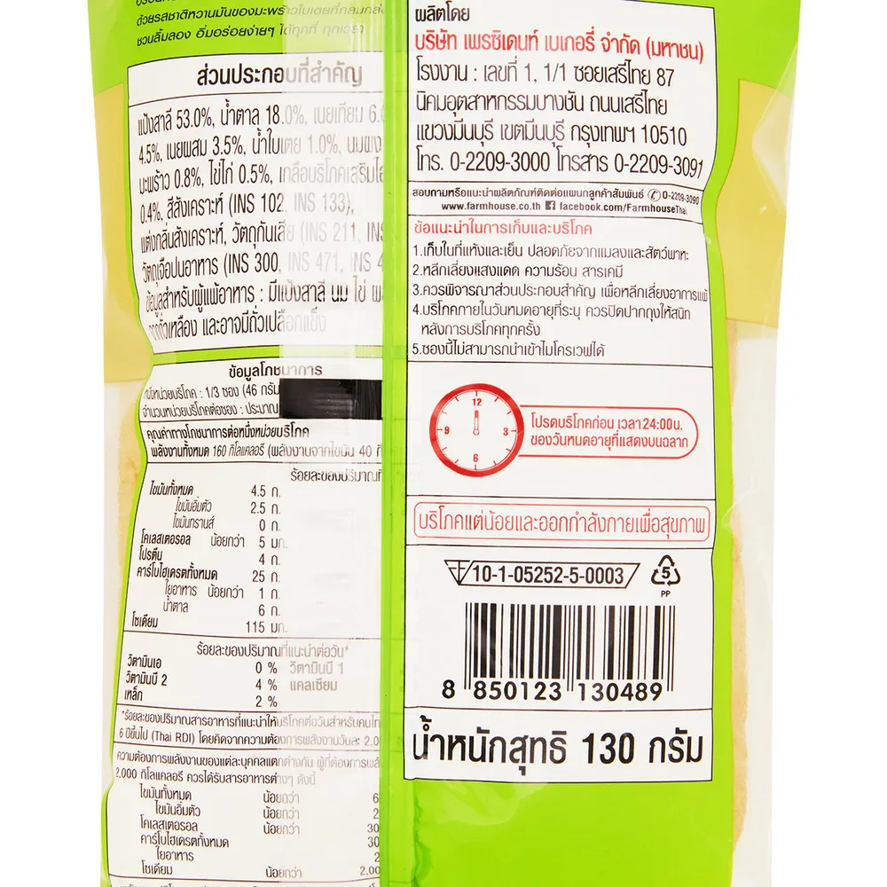 ฟาร์มเฮ้าส์ ขนมปังแพมะพร้าวใบเตย 130 ก.