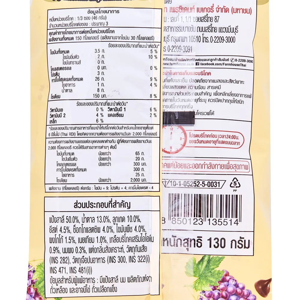 <p>ฟาร์มเฮ้าส์ ขนมปังโลฟโกโก้ลูกเกดช็อกชิพ 130 ก.<br />