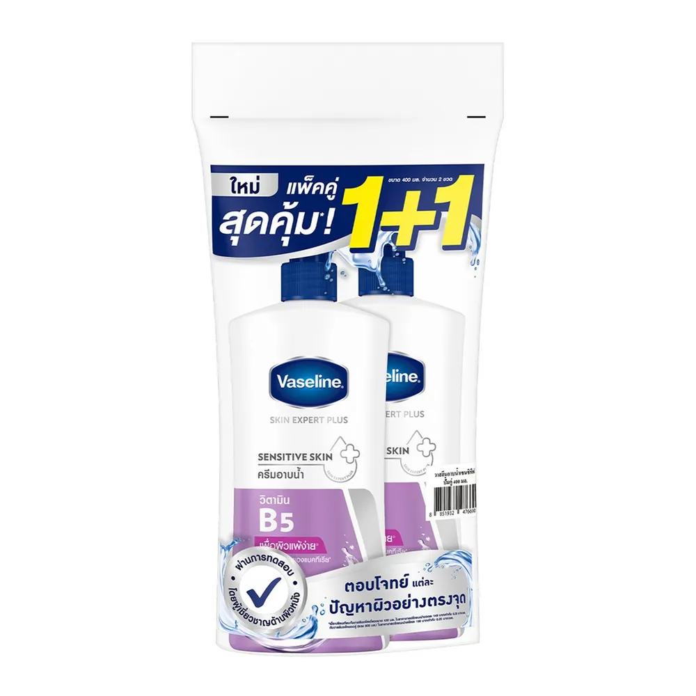 วาสลีน สกิน เอ็กซ์เพิร์ท พลัส เซนซิทีฟ สกิน บอดี้ วอช 400 มล. แพ็ค 1+1