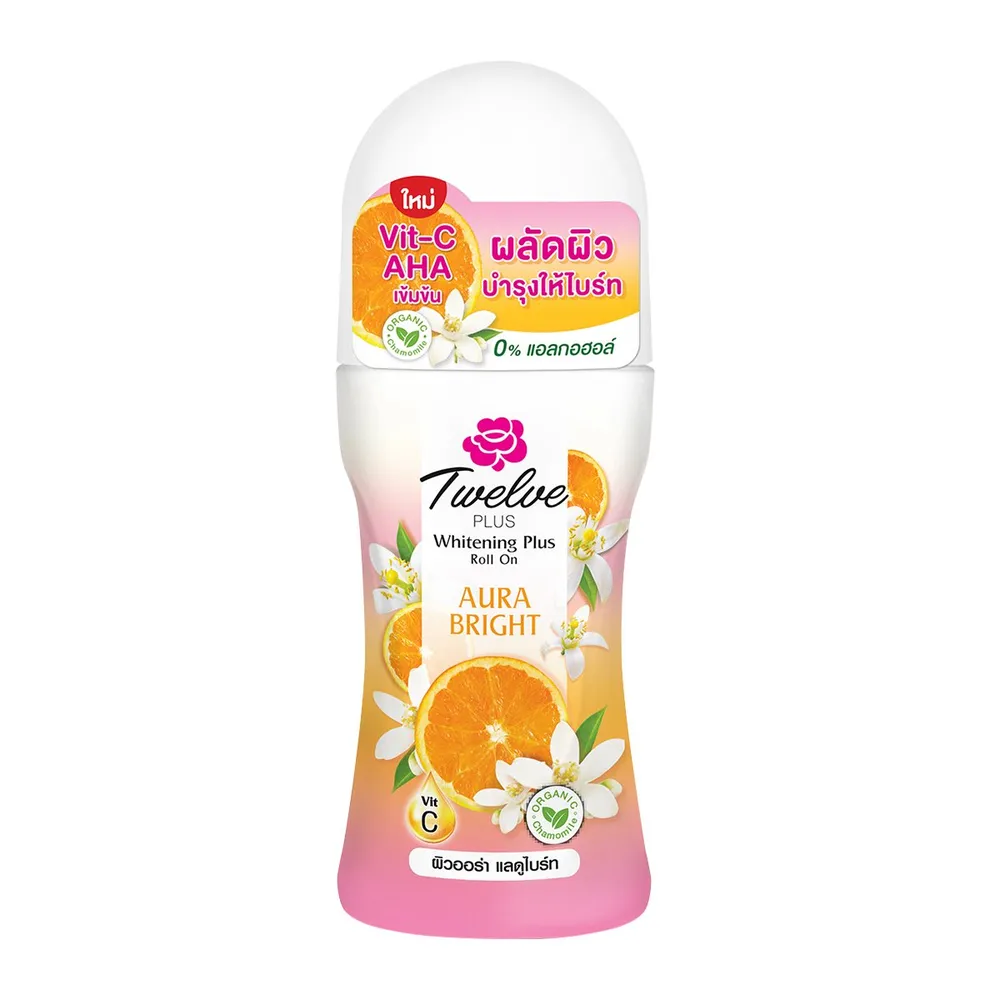<p>ทเวลฟ์ พลัส ไวท์เทนนิ่ง พลัส โรลออน ออร่า ไบรท์<br /><br />ผสาน Vit-C อณูขนาดเล็ก ที่ตรงเข้าฟื้นบำรุงผิวใต้วงแขนให้แลดูกระจ่างใส มองมุมไหนก็เรียบเนียน พร้อมช่วยปกป้องกลิ่นกายด้วยความหอมเฟรช สดใส ของดอกแมนดาริน ออเรนจ์<br /><br />- โรลออนระงับกลิ่นกาย<br />- เผยผิวใต้วงแขนแลดูไบรท์ ออร่าพุ้ง<br />- 0% แอลกอฮอล์ ไม่มีสารเคมีอันตราย<br />- AHA ทรงพลัง สกัดเข้มข้นจากผลไม้ ช่วยผลัดเซลล์ผิวที่หมองคล้ำ เสื่อมสภาพได้อย่างอ่อนโยน<br />- ลดการอุดตันของรูขุมขน<br /><br />