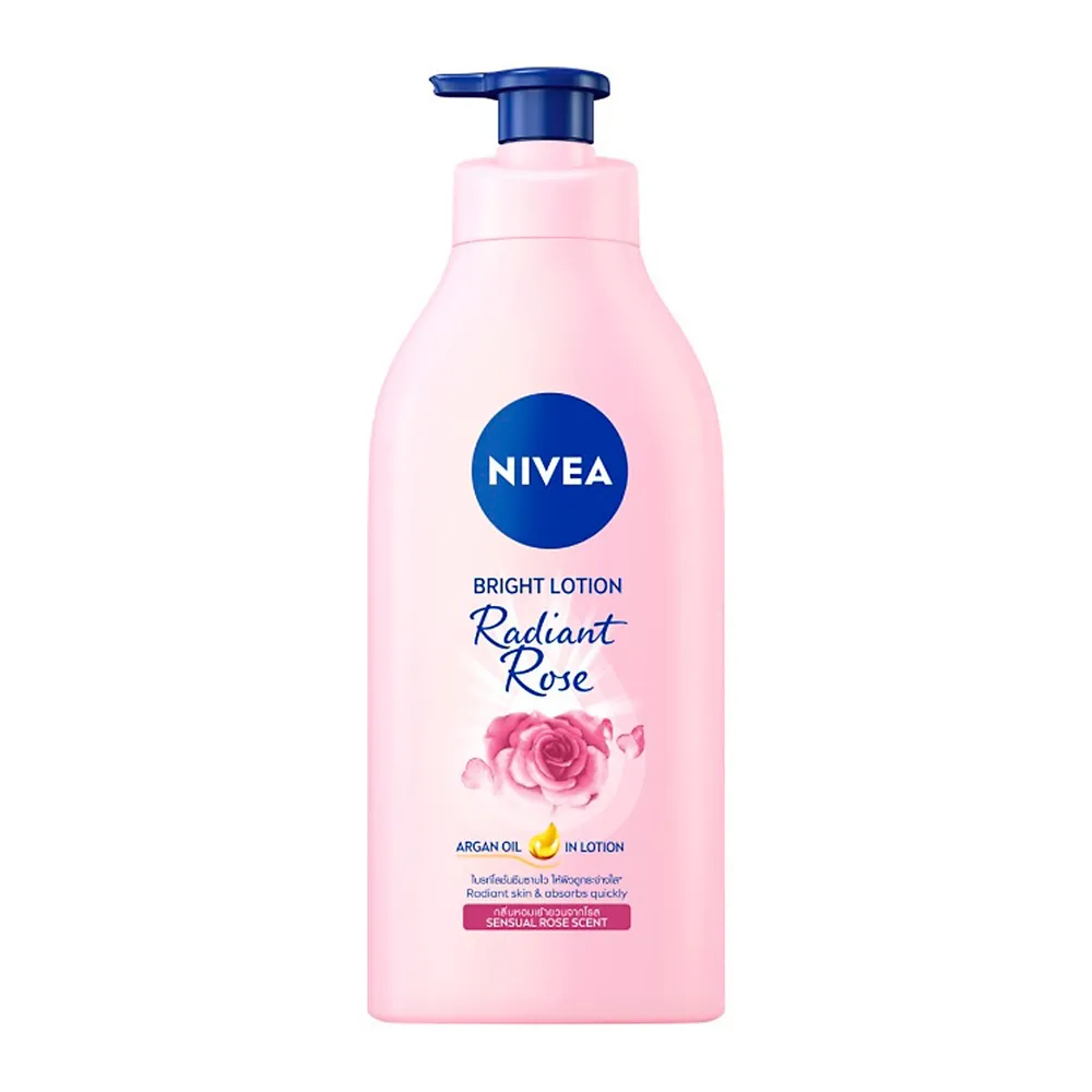 นีเวีย เรเดียนท์ โรส ไบรท์ โลชั่น โลชั่นผิวขาวบำรุงผิวกายเนื้อบางเบา เพื่อผิวดูขาวสว่างใส หอมละมุน เนียนฉ่ำครบในหนึ่งเดียว ที่สุดแห่งการดูแลผิว จากส่วนผสมอันทรงคุณค่า พัฒนาเป็นโลชั่นผสานอาร์แกน ออยล์ ปลุก 4 สัมผัสความรู้สึก สะดุดตาด้วยผิวดูขาวสว่างใส หอมชวนหลงใหลจนเหลียวหลัง ผิวเนียนนุ่มเมื่อลูบไล้ สัมผัสใจจนตกหลุมรัก<br />