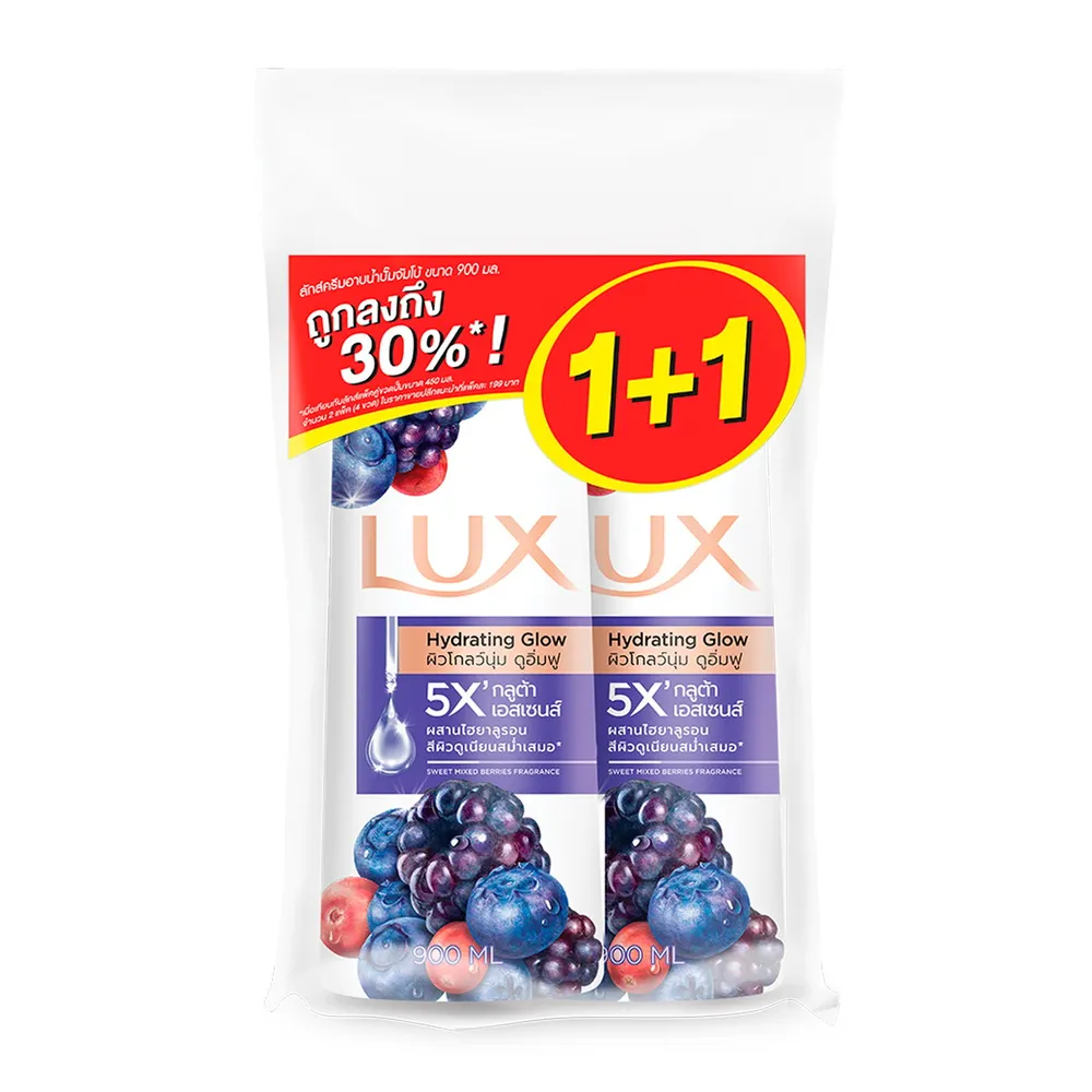ลักส์ ไฮเดรดติ้ง โกลว์ บอดี้วอช 900 มล. แพ็ค 1+1