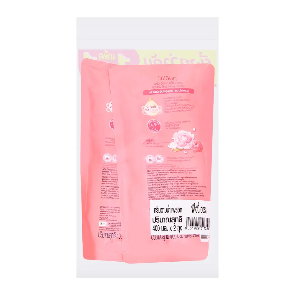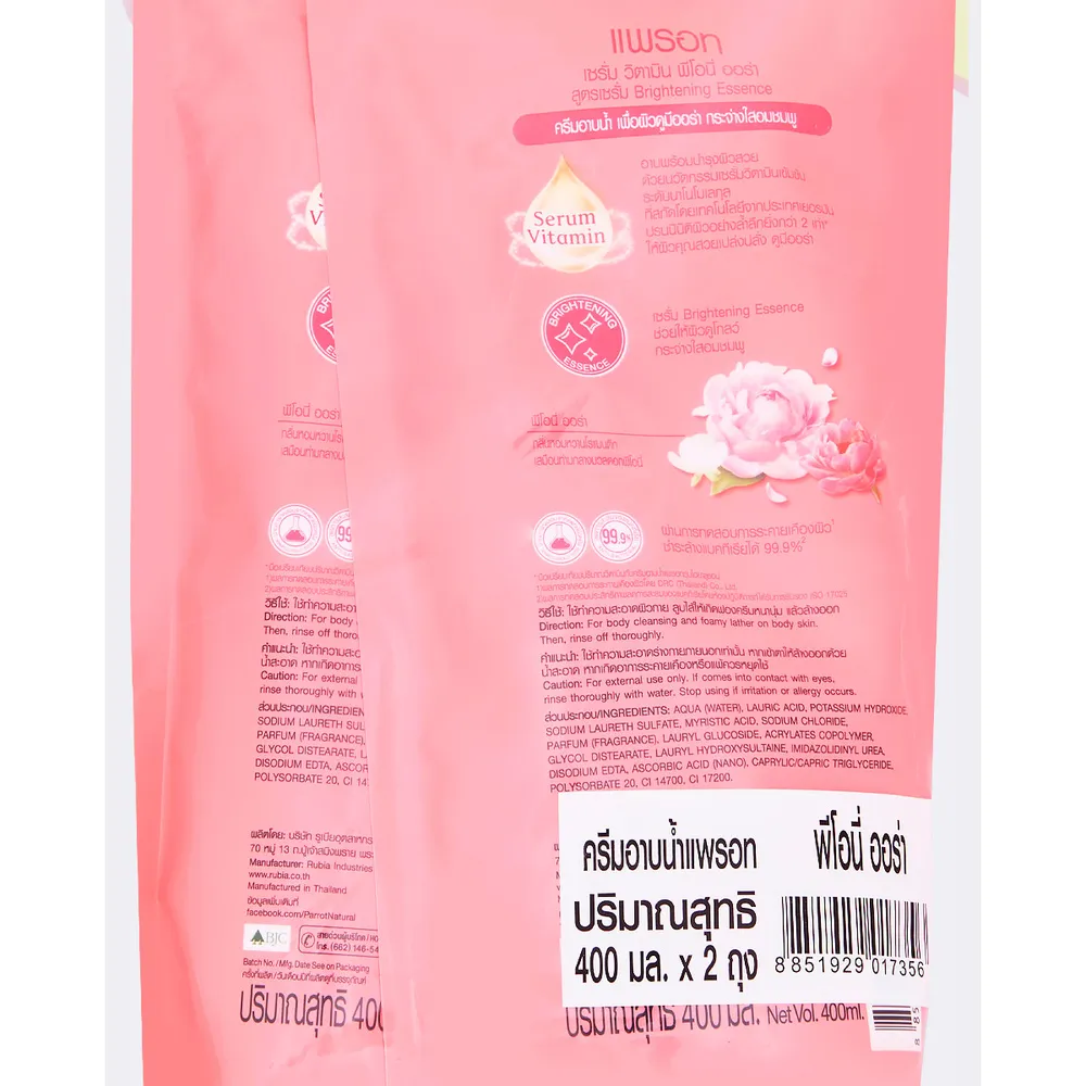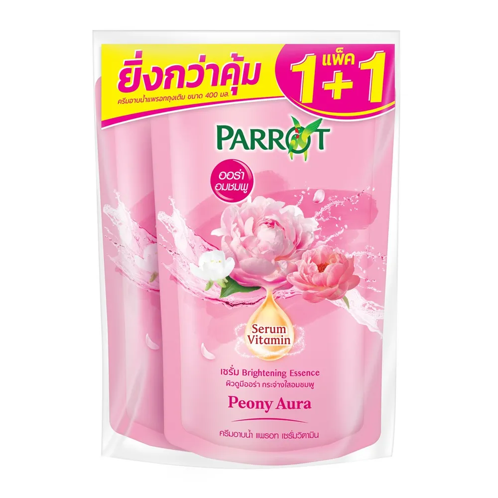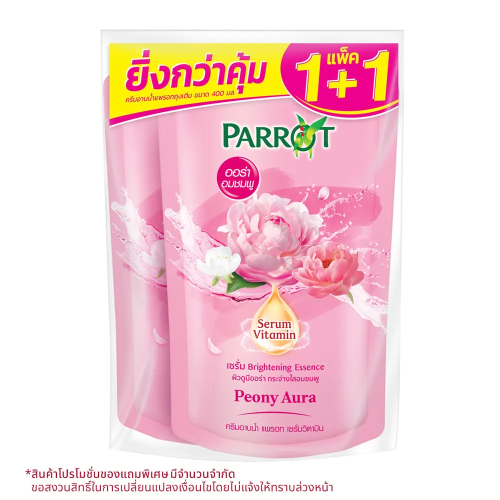 แพรอท ครีมอาบน้ำ เซรั่มวิตามิน พีโอนี่ ออร่า แบบถุงเติม 400 มล. แพ็ค 1+1