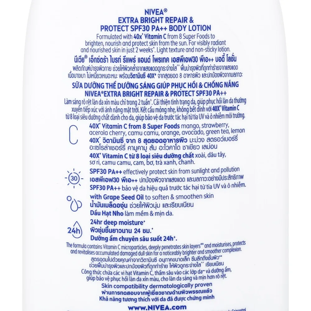 - นีเวีย เอ็กซ์ตร้า ไบรท์ รีแพร์ แอนด์ โพรเทค บอดี้โลชั่น SPF30 PA+++<br />