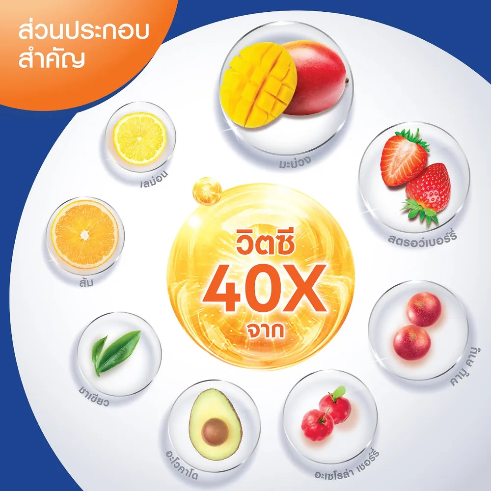 - อุดมไปด้วยคุณค่าของไมโครวิตามินซี อนุภาคขนาดเล็ก ซึมลึกถึงชั้นผิว**<br />