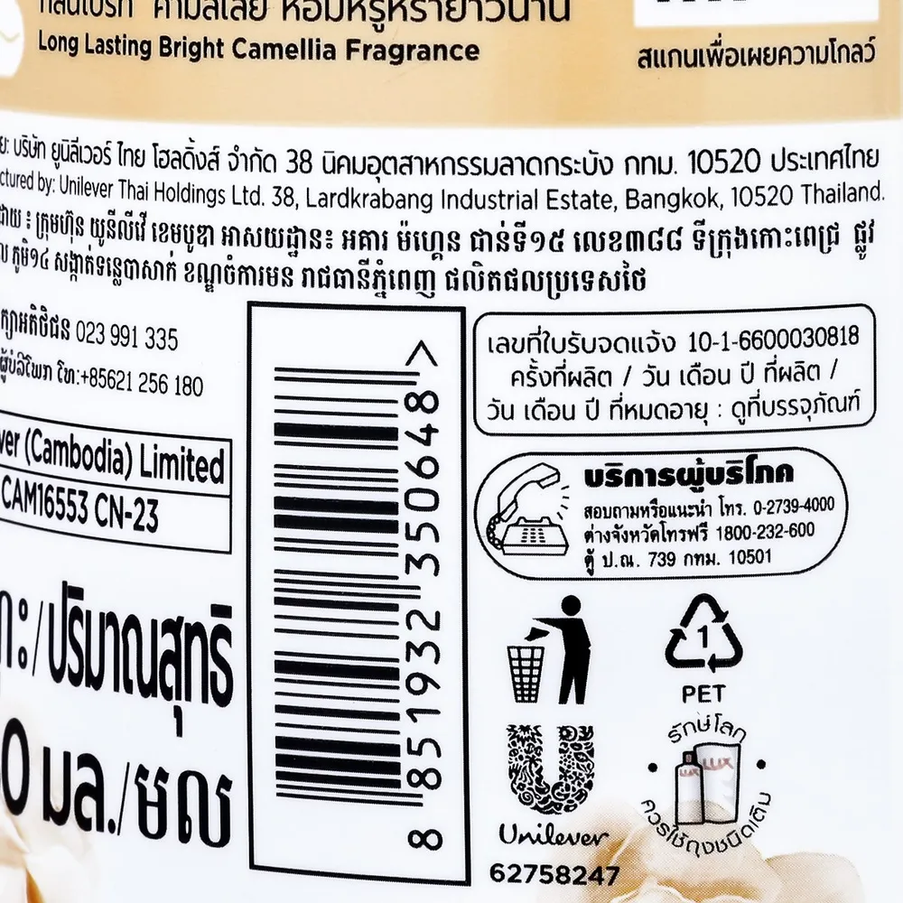 <p>ลักส์ ครีมอาบน้ำ ไบร์ท คามิเลีย<br /> <br />ลักส์ ครีมอาบน้ำ ไบร์ท คามิเลีย ตัวช่วยดีๆ ในการปรนนิบัติผิวให้เนียนนุ่มชุ่มชื่นน่าสัมผัส ด้วยไบร์ทเทนนิ่ง เอสเซ้นส์ และไนอาซินนาไมด์ที่ช่วยบำรุง และเติมมอยส์เจอไรเซอร์ให้ผิวในขณะอาบน้ำ พร้อมกลิ่นหอมเย้ายวนใจจากผู้เชี่ยวชาญน้ำหอมระดับโลก<br /><br /> - ให้ฟองครีมเนียนนุ่ม พร้อมกลิ่นหอมอันน่าหลงใหล<br /> - มี 5X กลูต้าเอสเซ้นส์ และไนอาซินนาไมด์<br /> - ช่วยบำรุงและเติมความชุ่มชื่น ช่วยให้ผิวดูกระจ่างใส สุขภาพดี<br /> - สร้างสรรค์กลิ่นโดยผู้เชี่ยวชาญน้ำหอมระดับโลก<br /> <br /> <span style="color: #ff0000;">สินค้าที่ได้รับอาจมีการปรับเปลี่ยนแพ็คเกจและปริมาณจากผู้ผลิต ขออนุญาตสงวนสิทธิ์ในการเปลี่ยนแปลงดังกล่าว โดยไม่แจ้งให้ทราบล่วงหน้า</span><br /> <br /> *ภาพประกอบใช้เพื่อการโฆษณาเท่านั้น</p>
