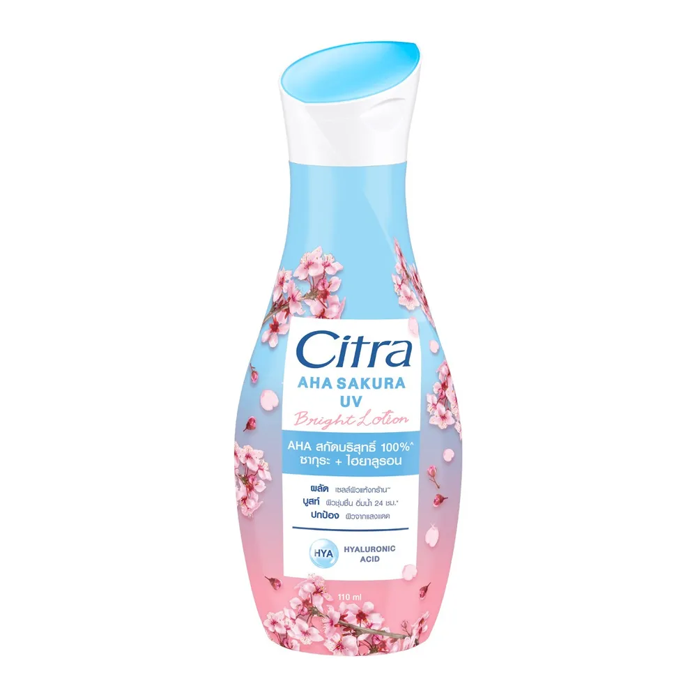 ซิตร้า เอเอชเอ ซากุระ ยูวี ไบรท์ โลชั่น สูตรใหม่! เนื้อโลชั่นบางเบา ซึมไว ไม่เหนียว อัพผิวกระจ่างใส เรียบเนียน สม่ำเสมอ<br />