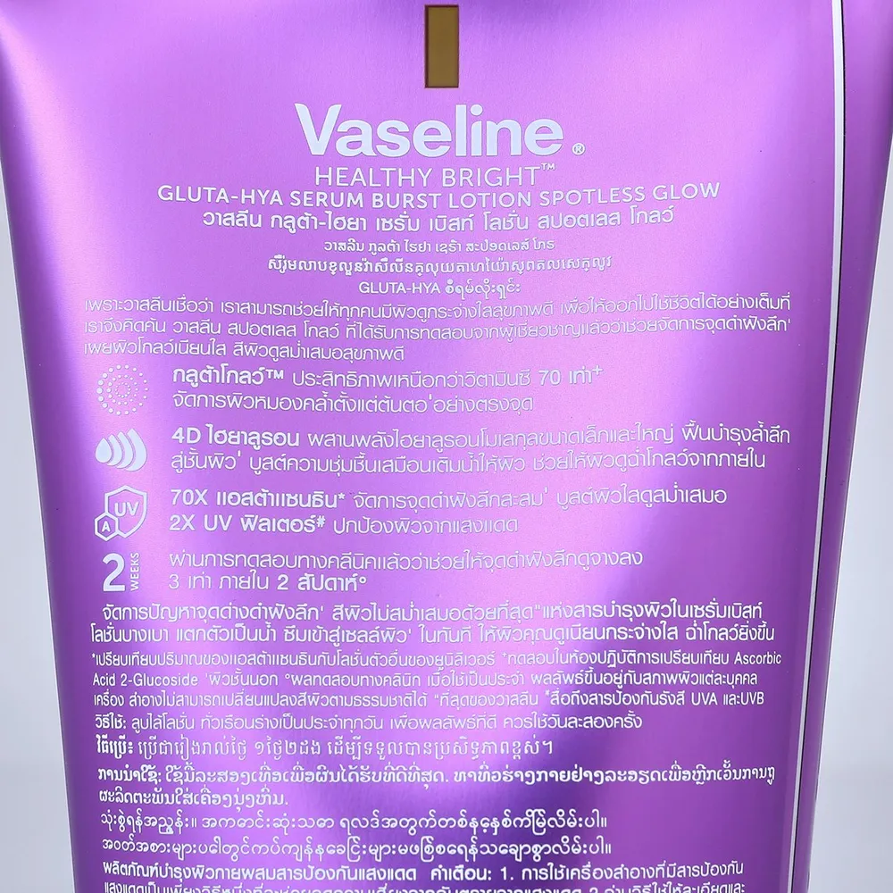 <p>วาสลีน กลูต้า-ไฮยา เซรั่ม เบิสท์โลชั่น สปอตเลส โกลว์<br />