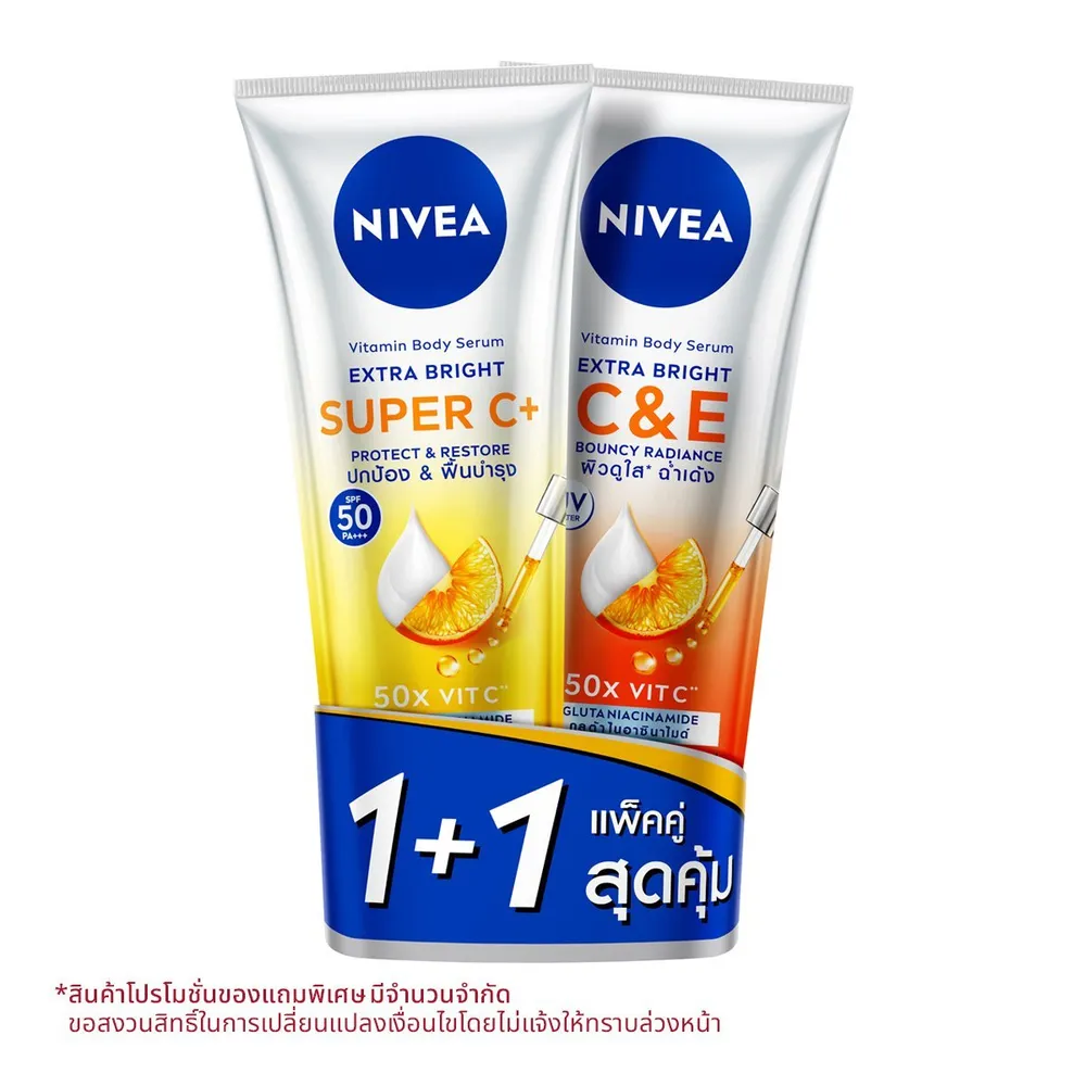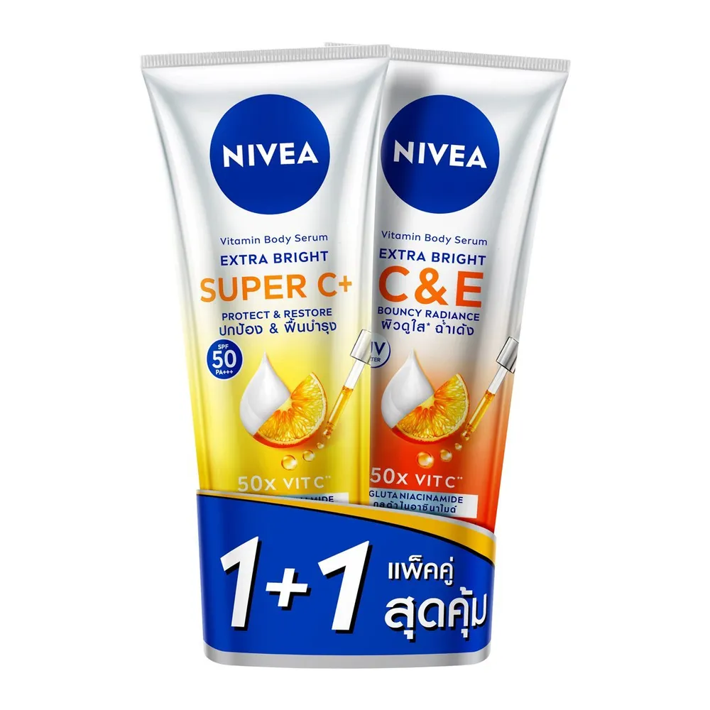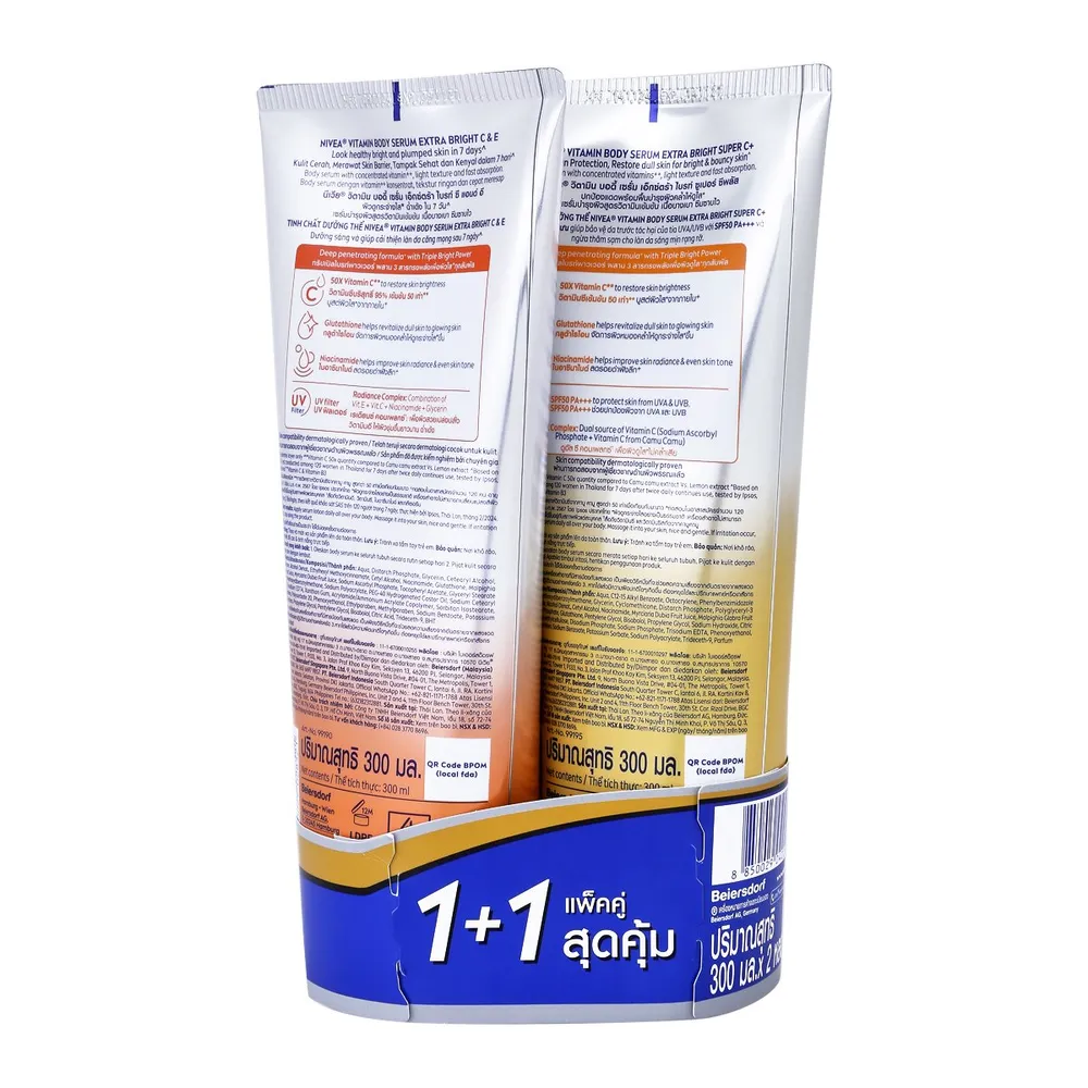 นีเวีย วิตามิน บอดี้ เซรั่ม เอ็กซ์ตร้า ไบรท์ ซูเปอร์ซี+ และซี แอนด์ อี 300 มล. แพ็ค 1+1