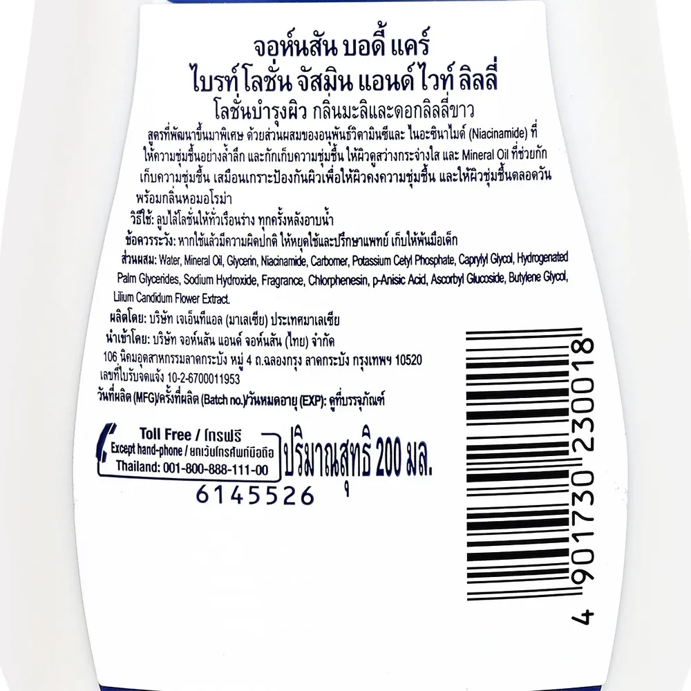 จอห์นสัน บอดี้แคร์ ไบรท์โลชั่น จัสมิน & ไวท์ ลิลลี่ 200 มล.