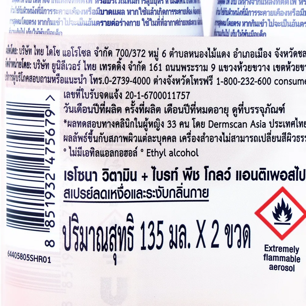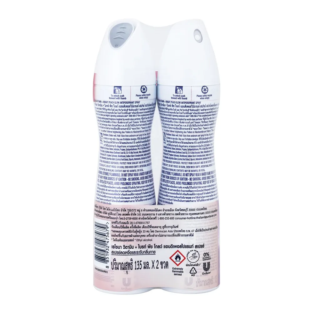 เรโซนา วิตามิน + ไบรท์ พีช โกลว์ แอนติเพอสไปแรนท์ สเปรย์ 135 มล. แพ็ค 2