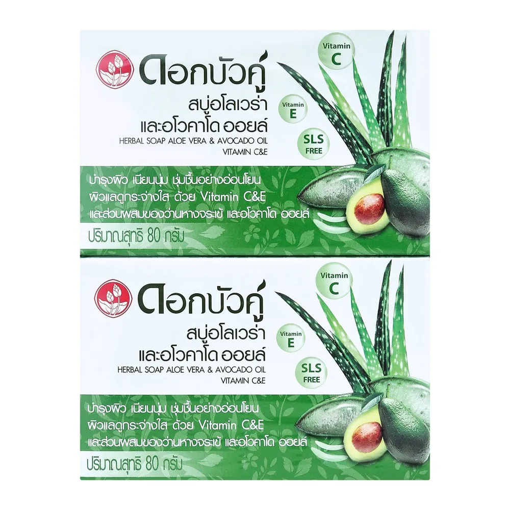 ดอกบัวคู่ สบู่สมุนไพรเพื่อสุขภาพผิว อาบผิวสวย ด้วยธรรมชาติจากส่วนผสมของอโลเวร่าและอโวคาโด ออยส์ บำรุงผิวให้เนียนนุ่ม ชุ่มชื่น อย่างอ่อนโยน อาบผิวสวย ด้วยธรรมชาติดอกบัวคู่ ผลิตภัณฑ์ที่ผู้ใช้บอกต่อ<br />