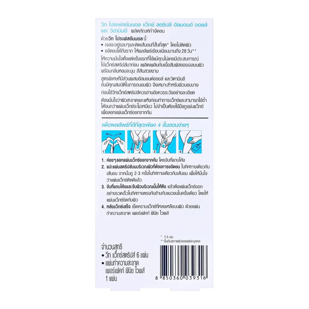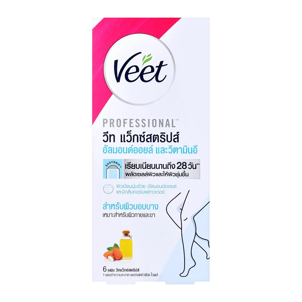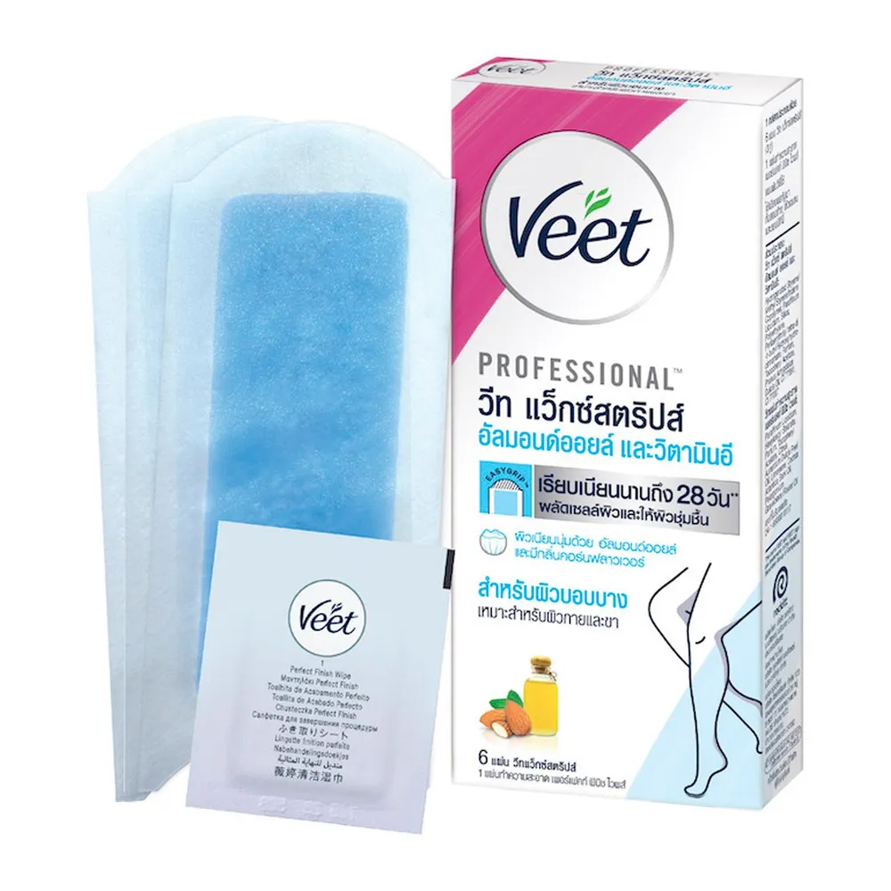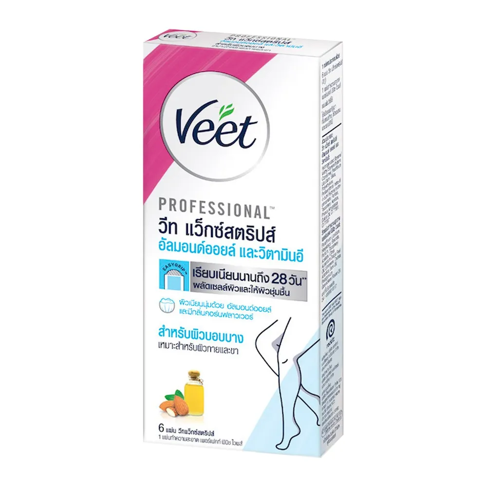 วีท แว็กซ์สตริปส์ อัลมอนด์ออยล์และวิตามินอี สำหรับผิวบอบบาง 6 แผ่น