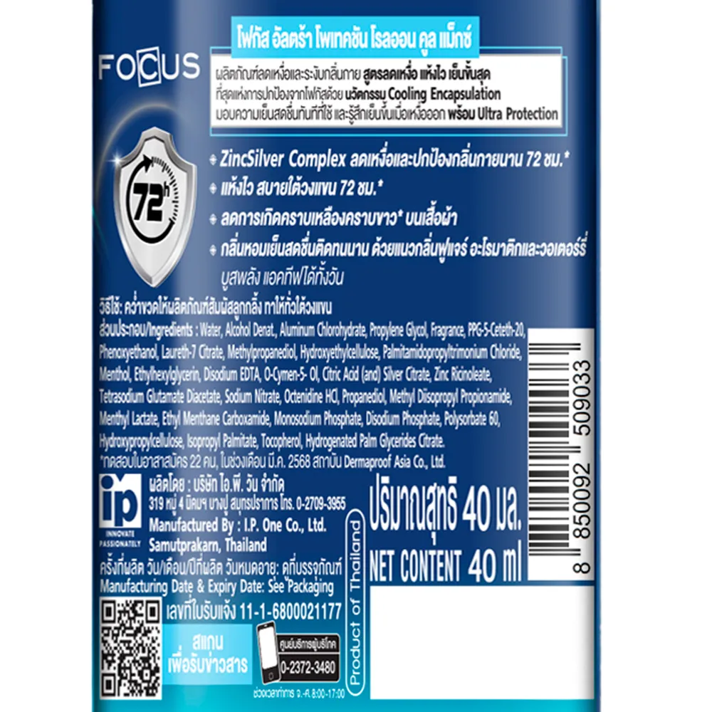 โฟกัส ไอซ์ซี่ เฟรช คูลลิ่ง โรลออนระงับกลิ่นกาย สูตรเย็น ไอซ์ซี่ เฟรช 40 มล.