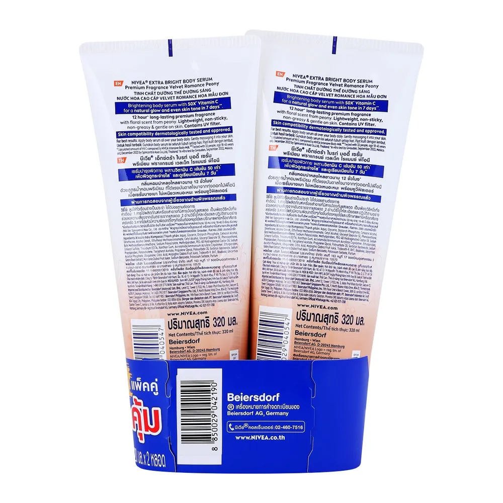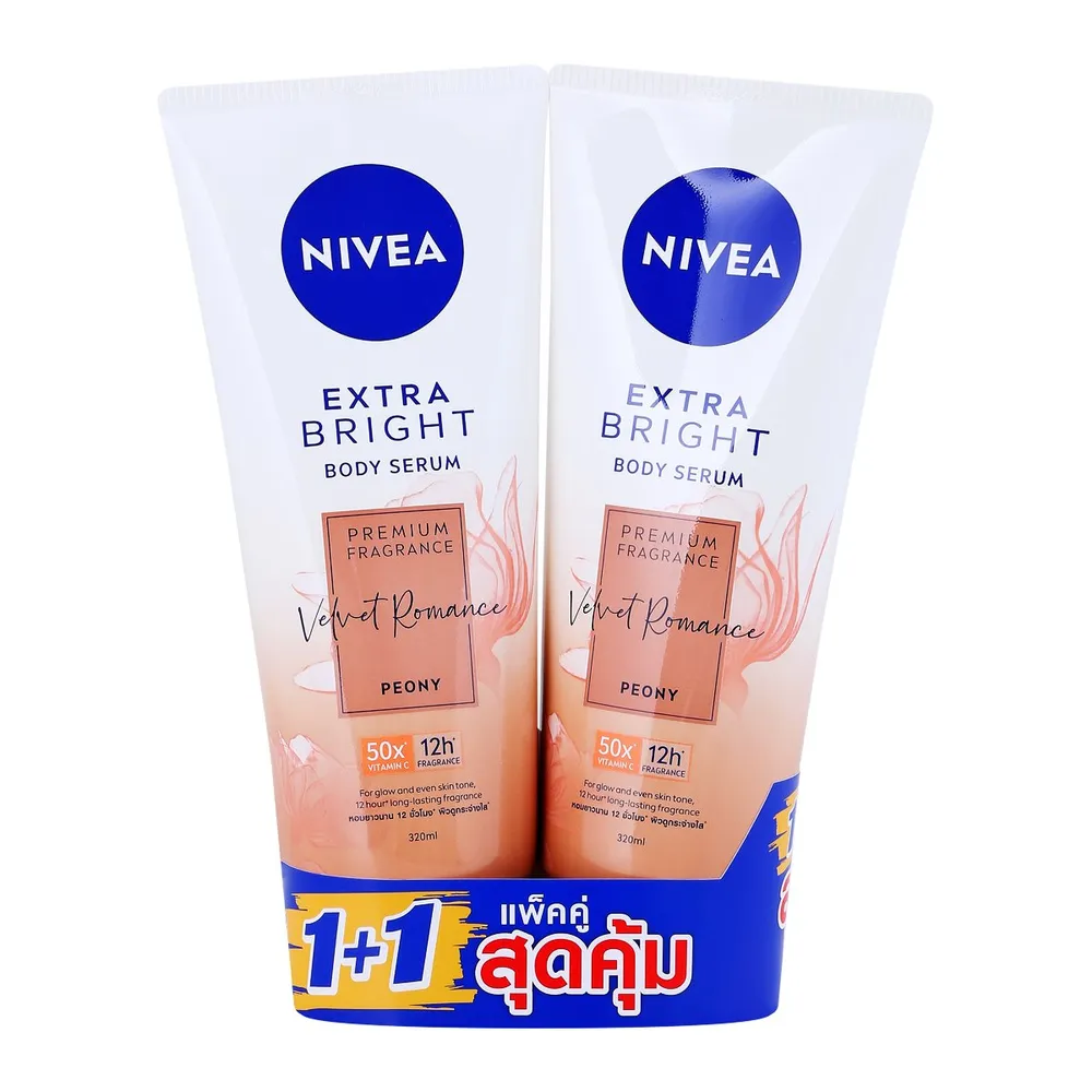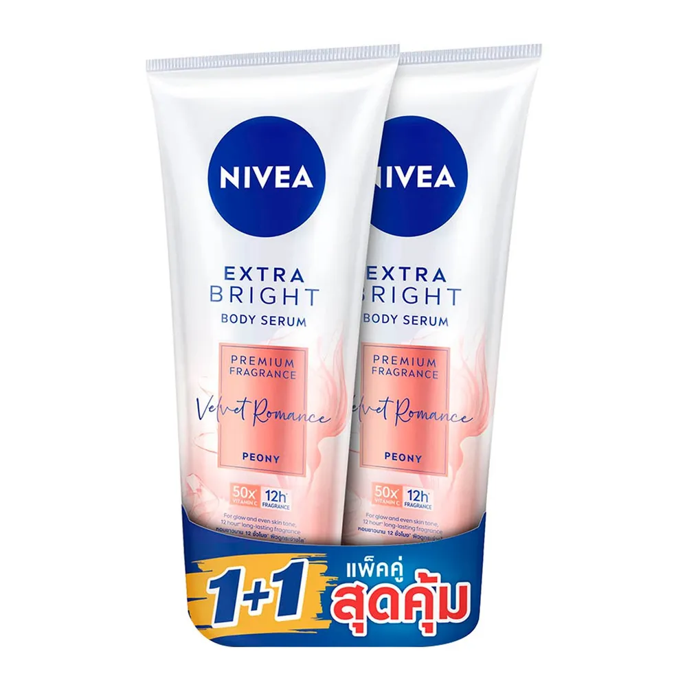 นีเวีย เอ็กซ์ตร้า ไบรท์ บอดี้ เซรั่ม พรีเมียม ฟราแกรนซ์ เวลเว็ท โรแมนซ์ พีโอนี 320 มล. แพ็ค 2 หลอด