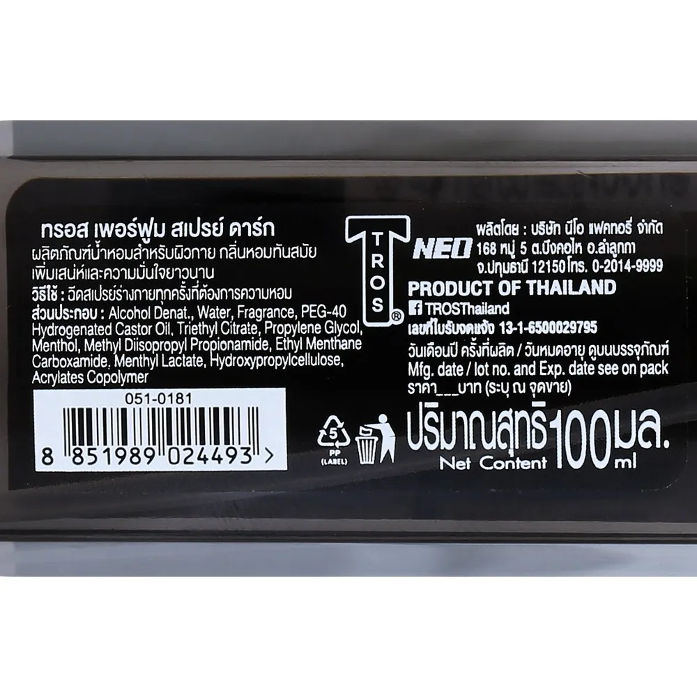 ทรอส เพอร์ฟูมสเปรย์ดาร์ก 100 มล.