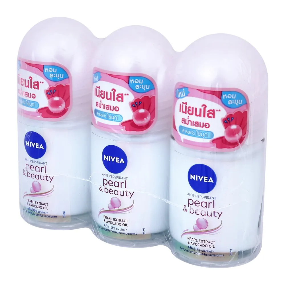 นีเวีย เพิร์ล แอนด์ บิวตี้ โรลออน ระงับกลิ่นกาย สำหรับผู้หญิง 25 มล. แพ็ค 3