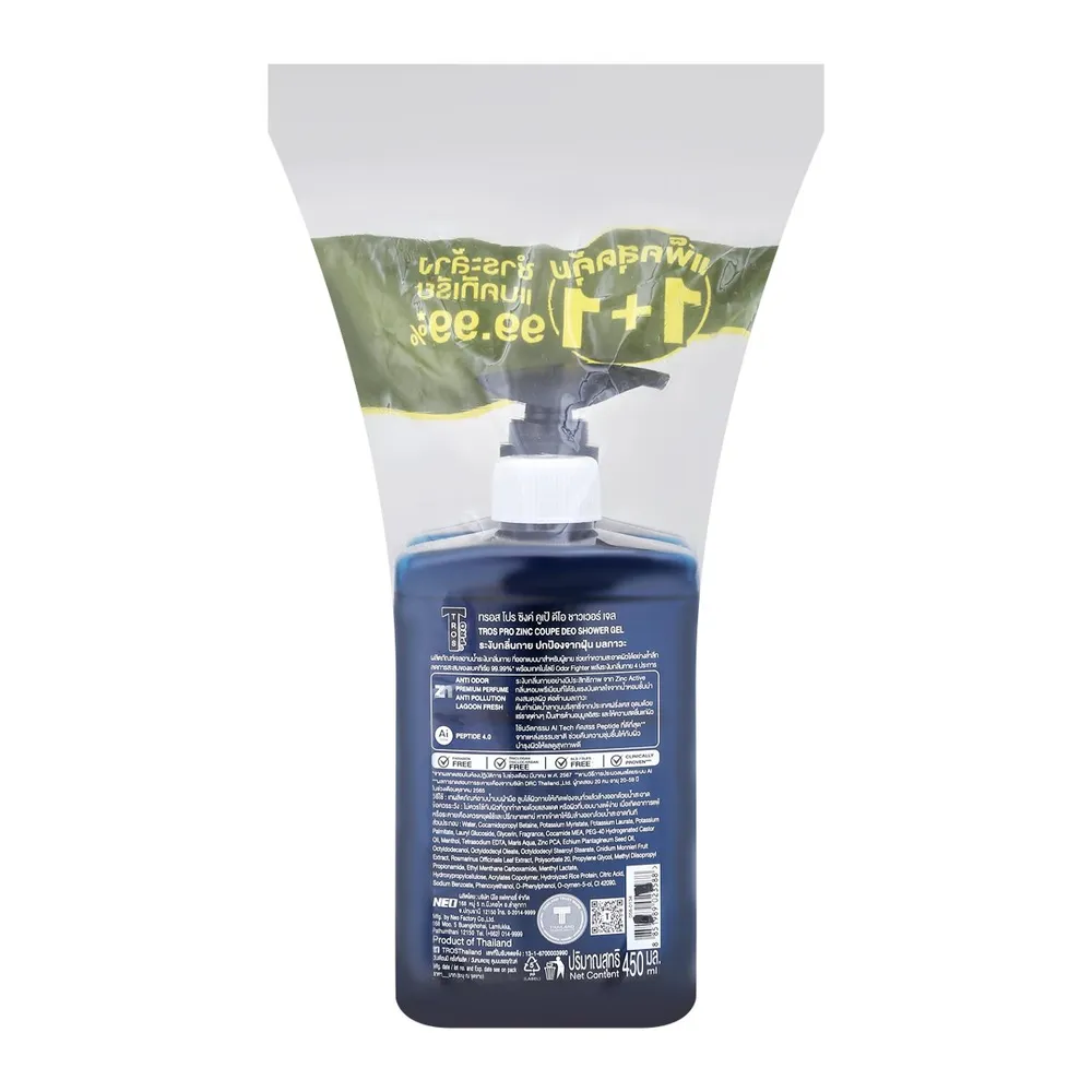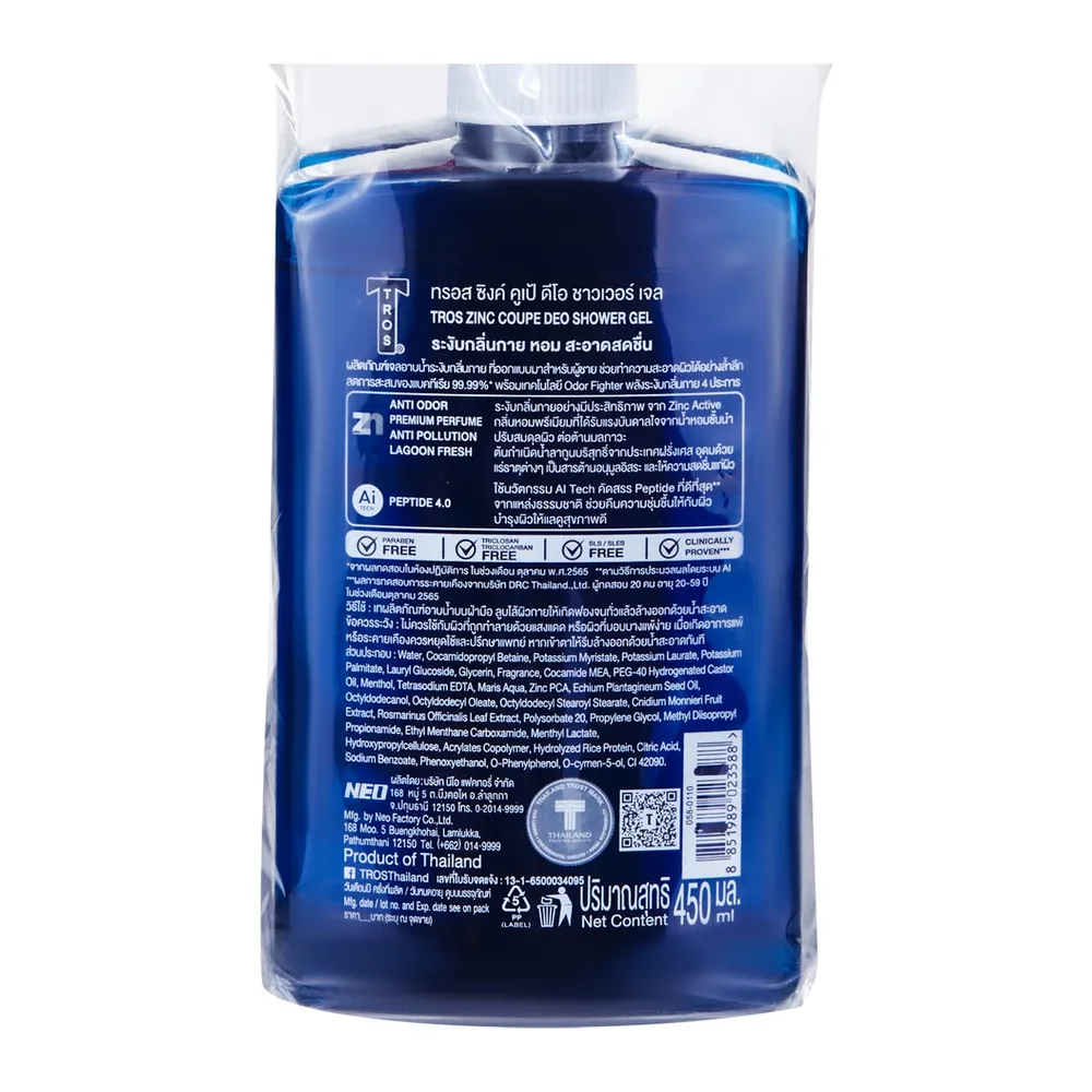 ทรอส ครีมอาบน้ำ คูเป้ดีโอโดแรนท์ สูตรซิงค์แอนด์ลากูนวอเตอร์ 450 มล. แพ็ค 1+1