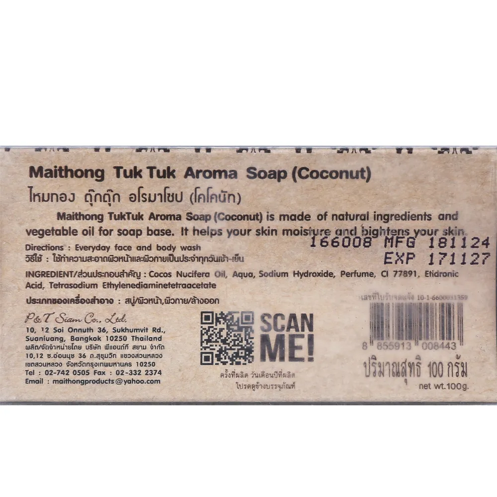 ไหมทอง ตุ๊กตุ๊ก อโรมาโซป (โคโคนัท) 100 ก.