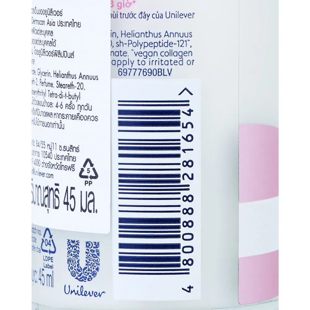 ผสาน 3% ไนอาซินาไมด์และ 10X คอลลาเจน ฟื้นบำรุงผิวคล้ำเสีย ปรับสีผิวสม่ำเสมอ เผยวงแขนดูโกลว์ใส ปราศจากพาราเบนและเอทิลแอลกอฮอล์ ปกป้องเหงื่อและกลิ่นกาย 48 ชั่วโมง+<br />