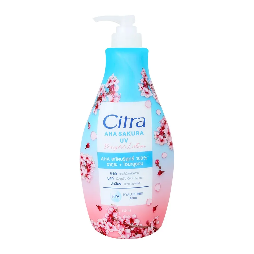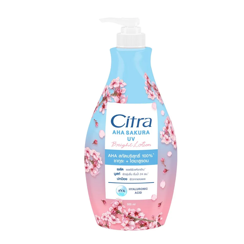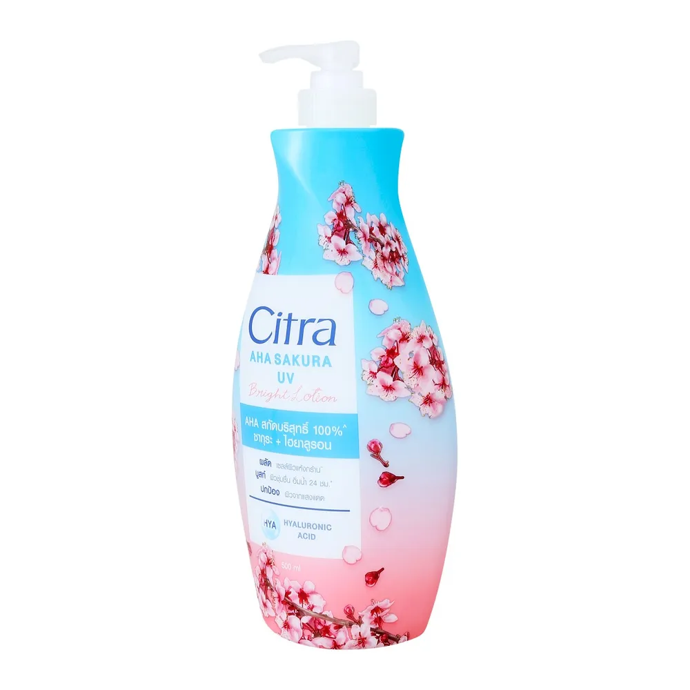 ซิตร้า เอเอชเอ ซากุระ ยูวี ไบรท์ โลชั่น สูตรใหม่! เนื้อโลชั่นบางเบา ซึมไว ไม่เหนียว อัพผิวกระจ่างใส เรียบเนียน สม่ำเสมอ<br />
