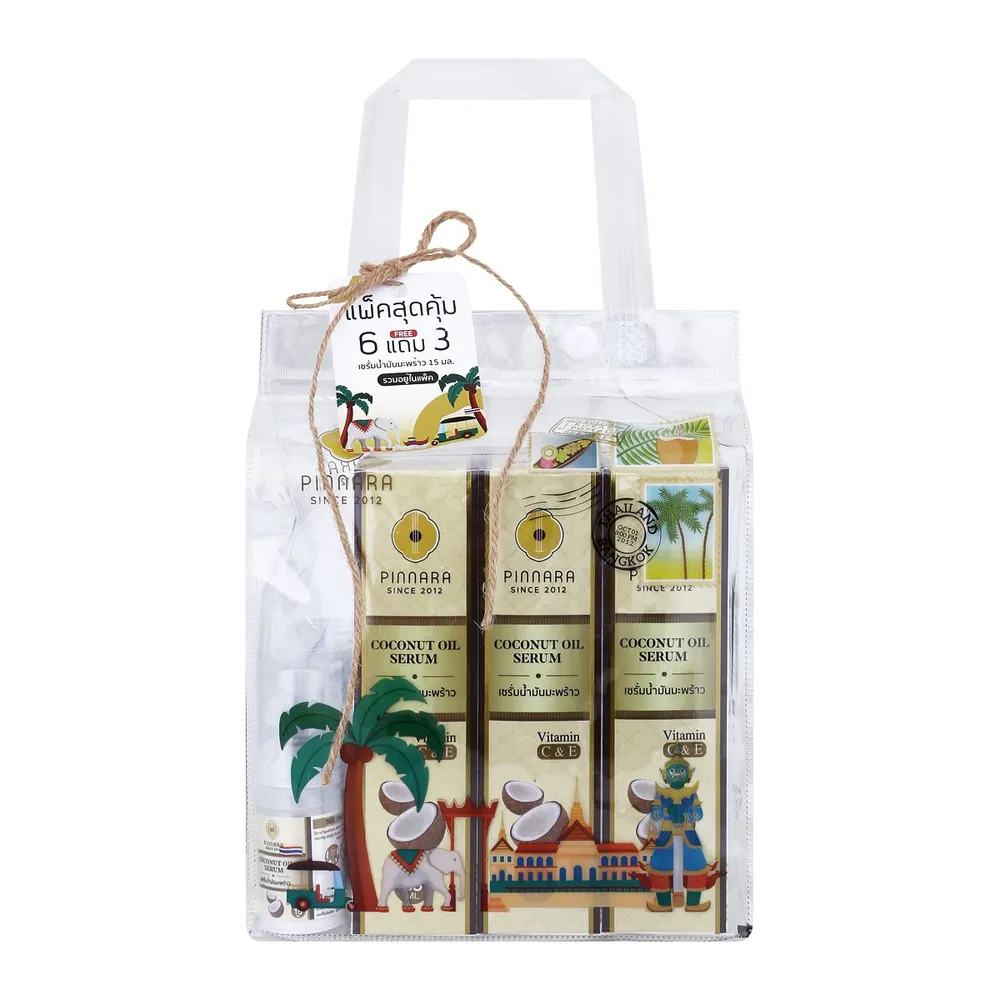 พิณนารา เซรั่มน้ำมันมะพร้าว 85 มล. x 6 ชิ้น แถม 15 มล. x 3